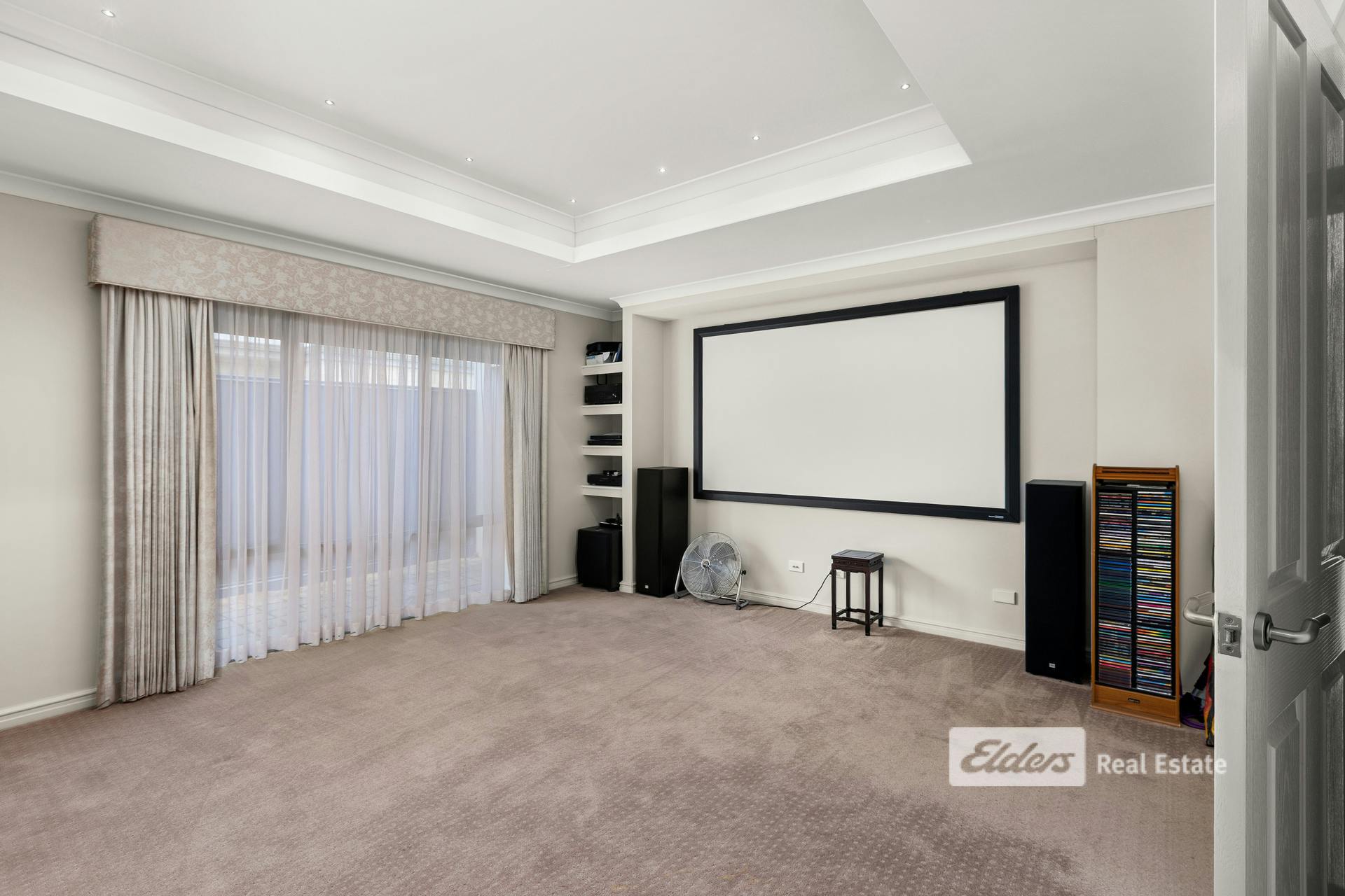 The home features 3 large bedrooms complemented by ducted air conditioning throughout for year-round comfort. A grand hallway entry sets the tone on arrival, leading to a separate theatre room with a raised ceiling and included 100" projector screen, perfect for movie nights or quiet relaxation. A dedicated home office adds flexibility for those working from home.