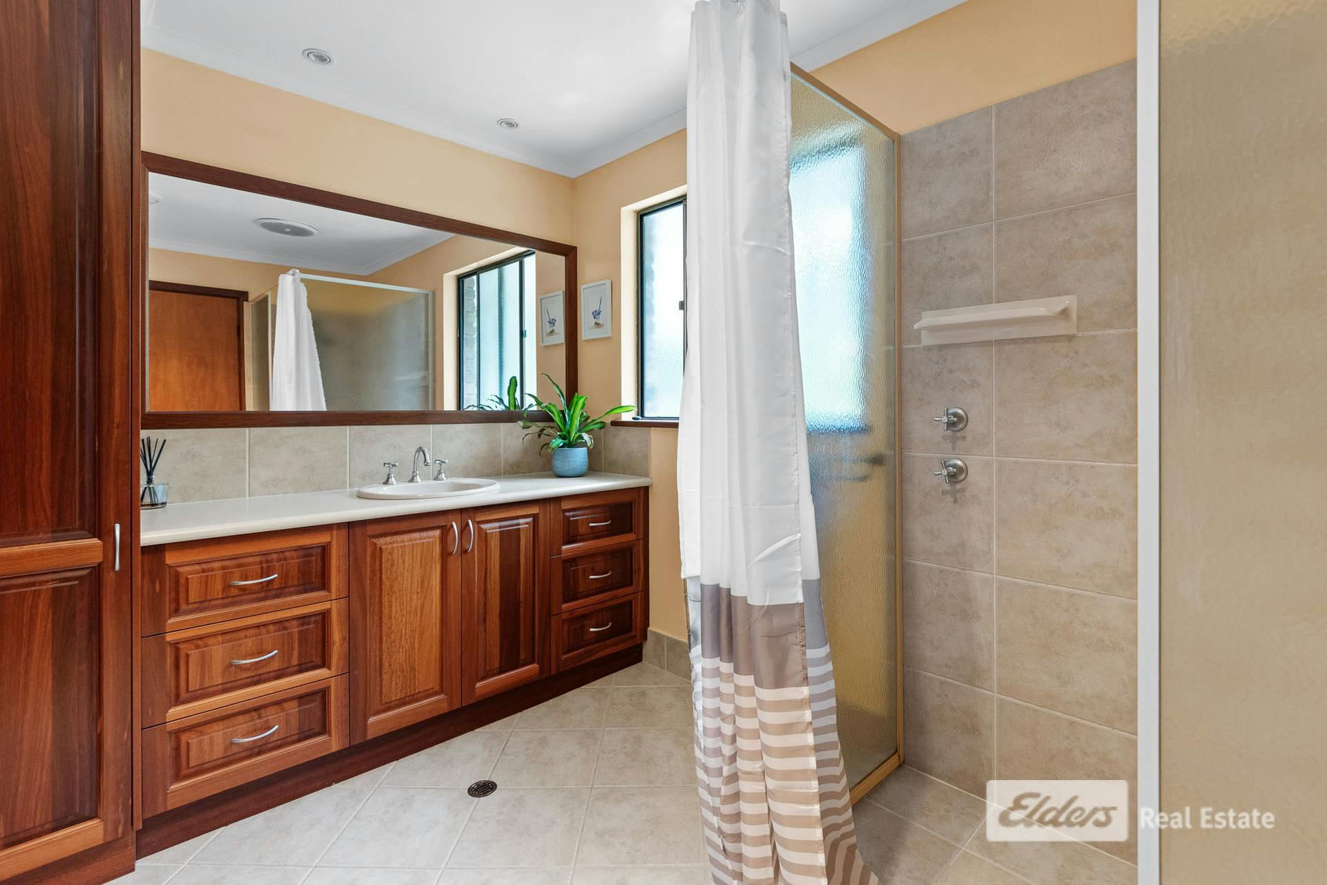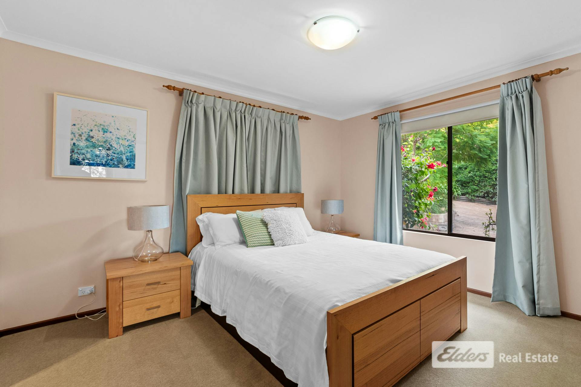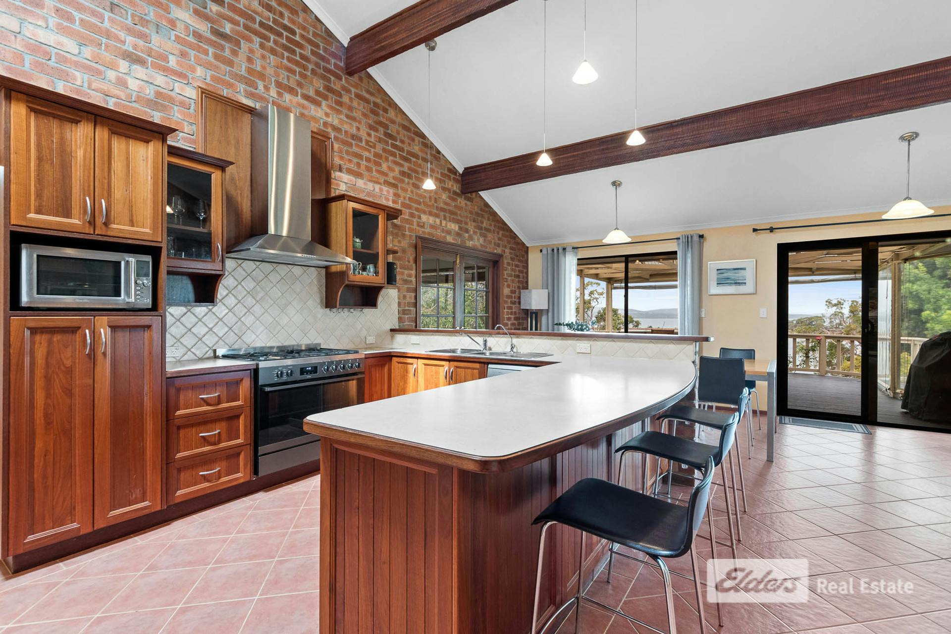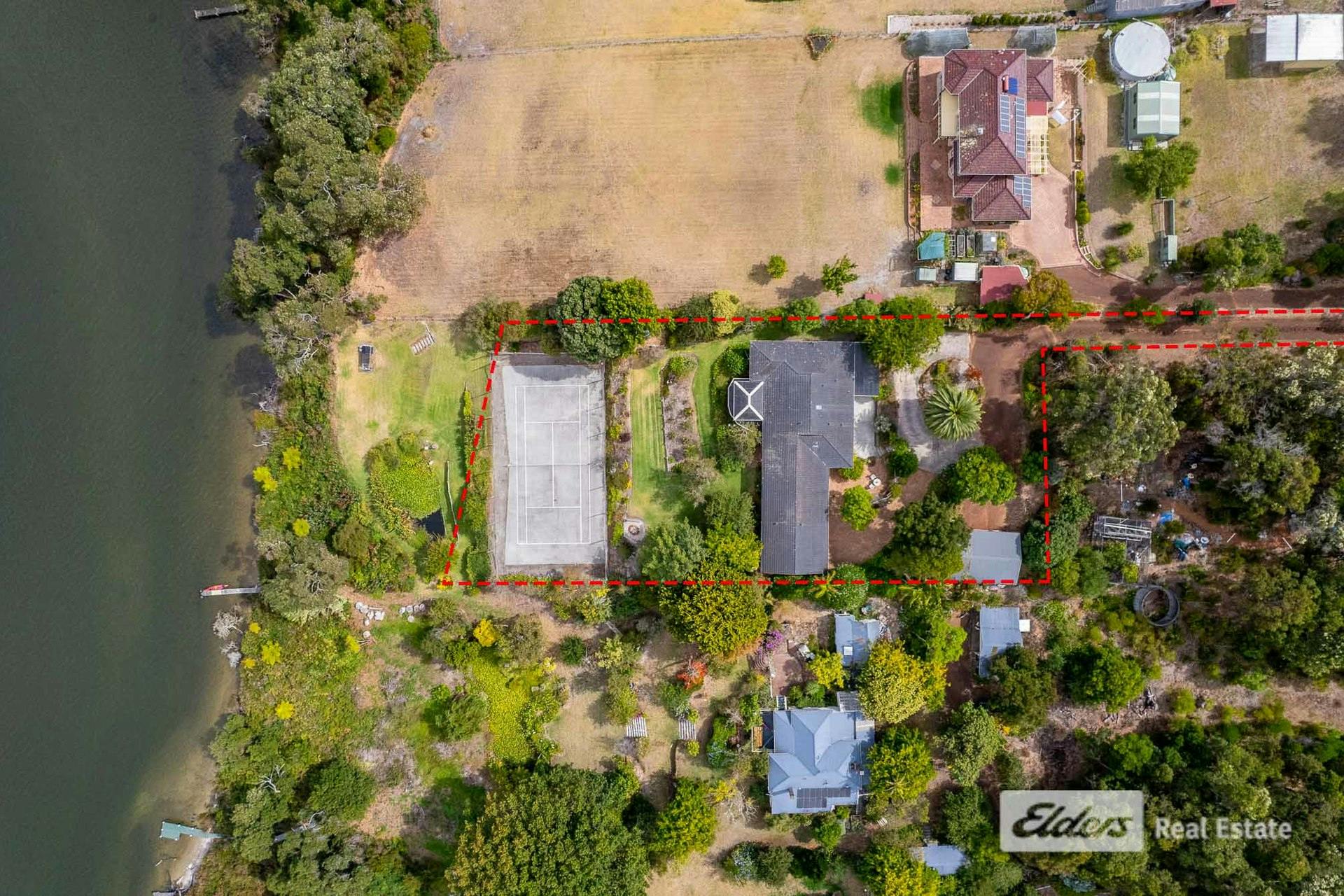 Gardens are beautifully lush with established beds and great areas of lawn for kids to romp. Enjoy some strawberries and cream and a smash or two on the fully functional tennis court, or leave it for the kids to ride bikes and play basketball. If you need shed space, the double garage/carport is complemented by a 7m by 9m powered shed and workshop with an additional two vehicle bays, ideal for the boat or poptop, with workshop space to spare. Birds are everywhere, from squadrons of pelicans across the water, to the local Sea Eagle stripping a fresh fish – the current owner has identified over 75 species during their occupancy. The gardens run right down to the foreshore reserve, where you can walk along a weathered jetty to launch a kayak or tinny, catch a fish, or enjoy a drink – this place truly is a haven for kids and adults alike.