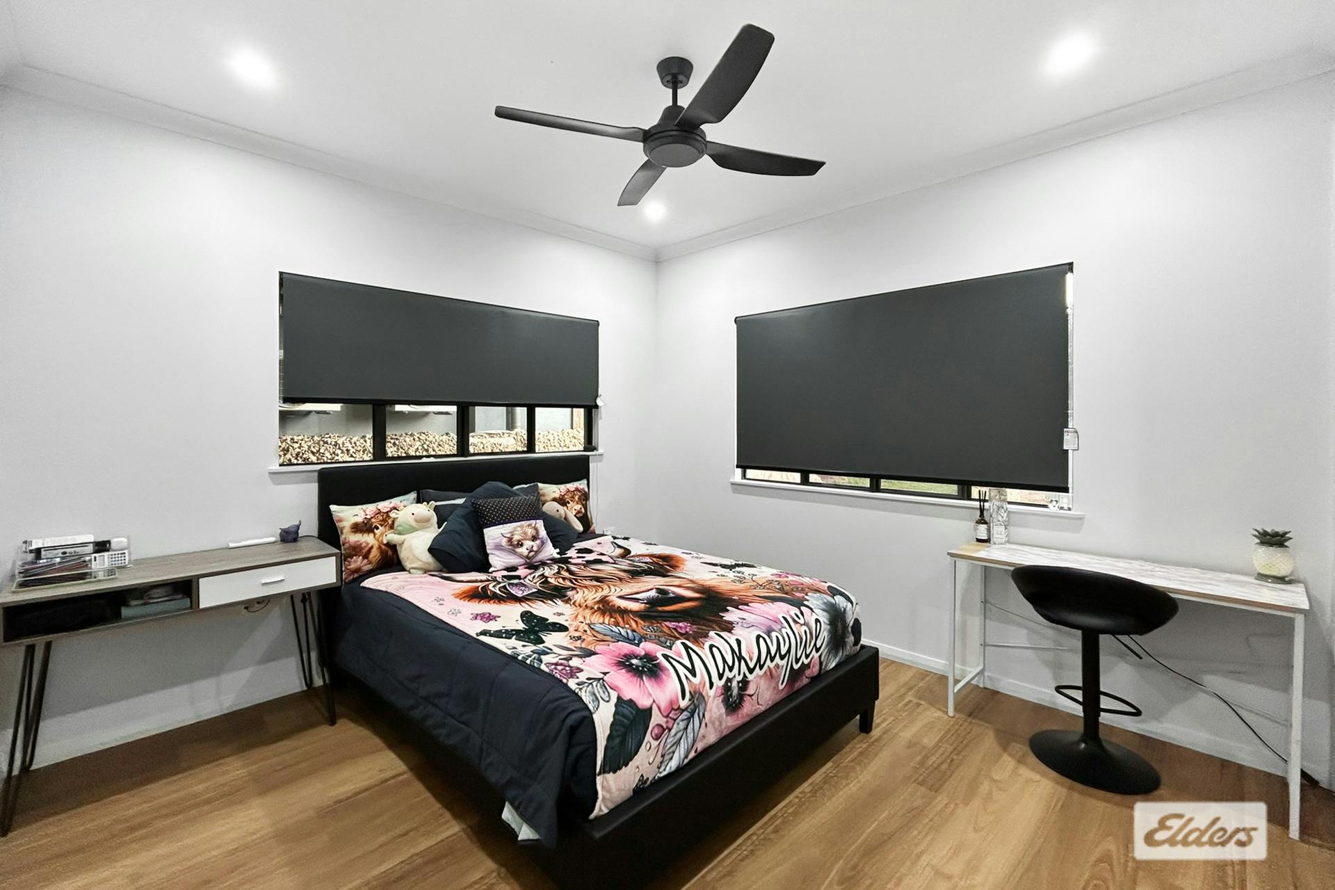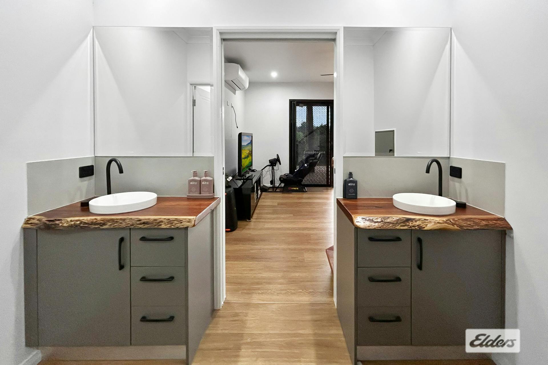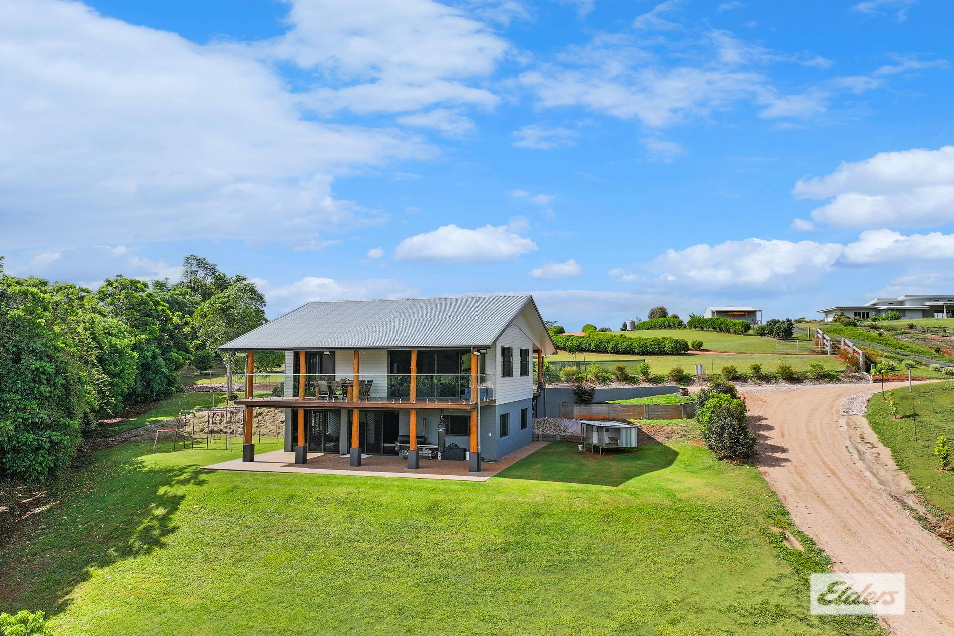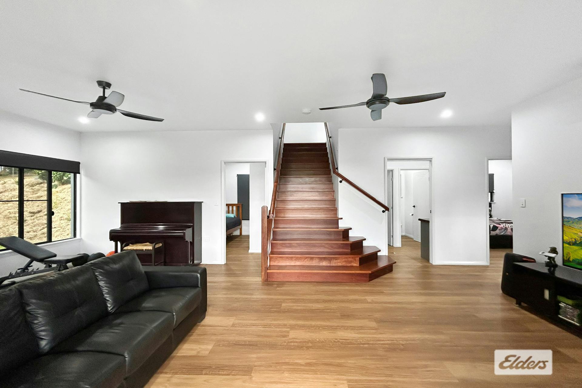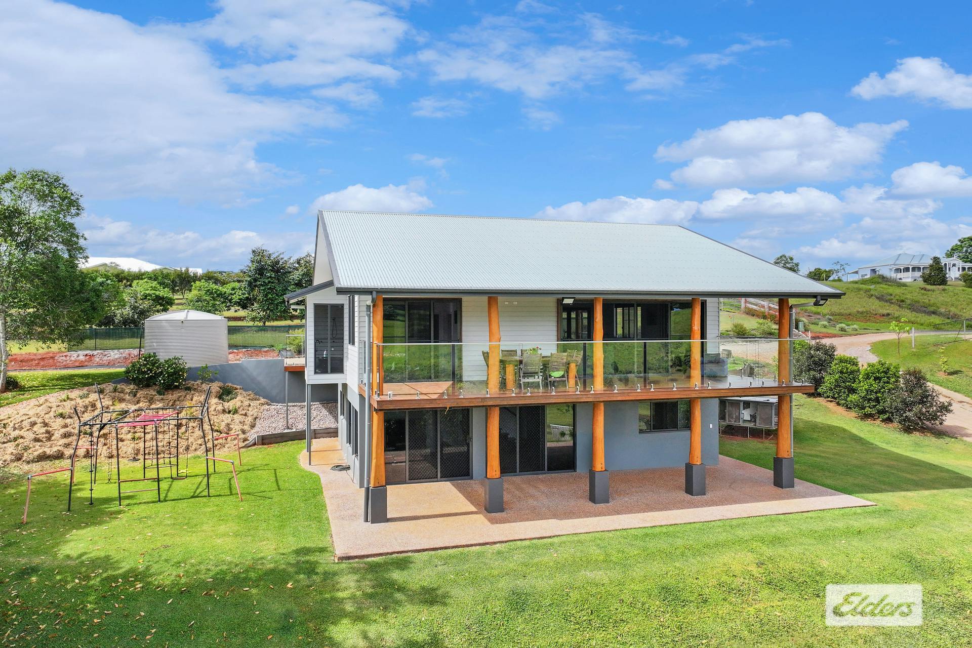 When you dream of a country life with something for the whole family to fall in love with….a luxury home for her, a massive shed for him, and a motocross track for the kids - you might never have believed it actually exists. Set on a idyllic 3.2 acre block in the tightly held Sanctuary Vista Estate Peeramon, this near new residence combines contemporary comfort with the serenity of rural life. Designed with no expense spared and a focus on family living, it offers panoramic views, total privacy from neighbours, and the versatility to accommodate multi generational households with ease.Upstairs, polished 19mm spotted gum floors and high ceilings create a light filled sense of space in the open plan kitchen, dining, and living zone. At the heart of the home, the kitchen is both stylish and functional, complete with stone benchtops, abundant storage, and a wide island bench perfect for casual meals or entertaining. While you cook, soak up the outlook across rolling farmland through wide glass sliders that open onto a large, covered verandah, ideal for alfresco dining and relaxed get togethers.