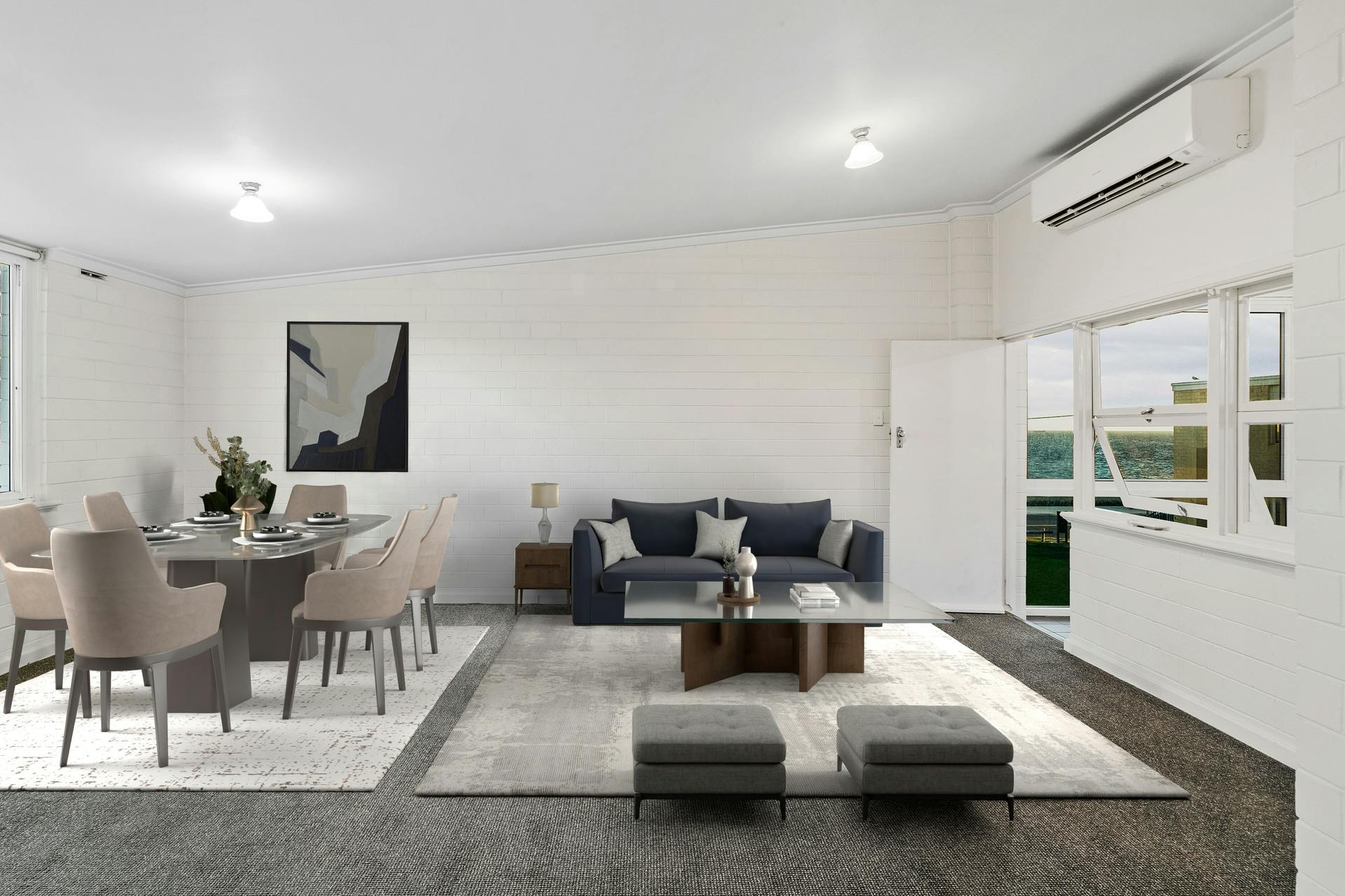 The open-plan kitchen, dining and lounge area is thoughtfully designed to maximise both space and scenery, with large windows framing the coastline. Spacious bedrooms provide peaceful, light-filled retreats, while the well-appointed bathroom is centrally located for convenience. Every element combines comfort, functionality and effortless living in a smart 70sqm layout.