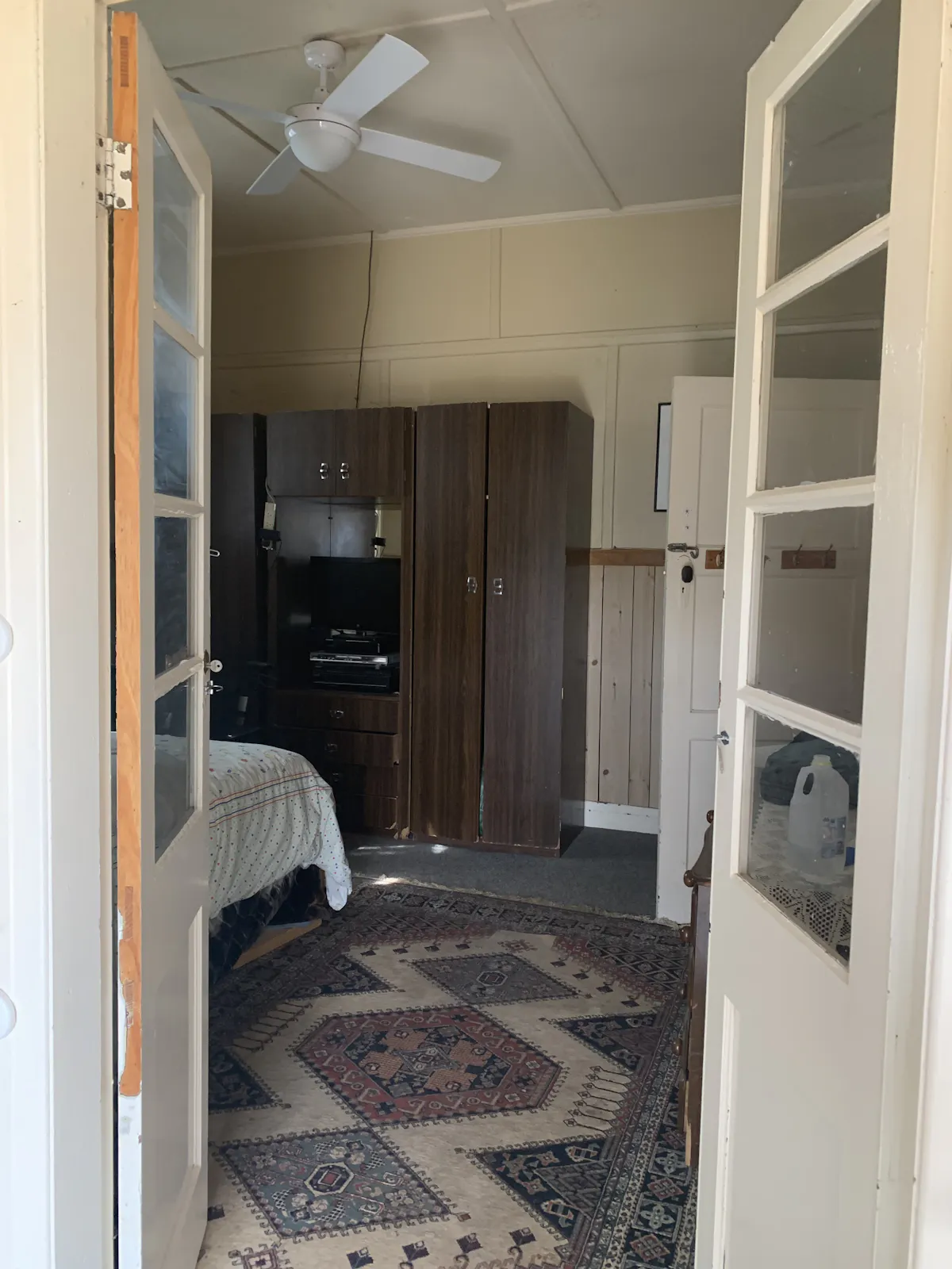 • MAIN BEDROOM WITH FRENCH DOORS, CEILING FAN AND BOX A/C