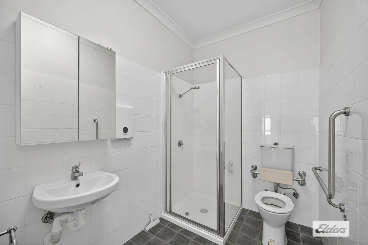 Modern Amenities: A spacious main bathroom featuring stylish 1800mm tiling and wheelchair accessibility.