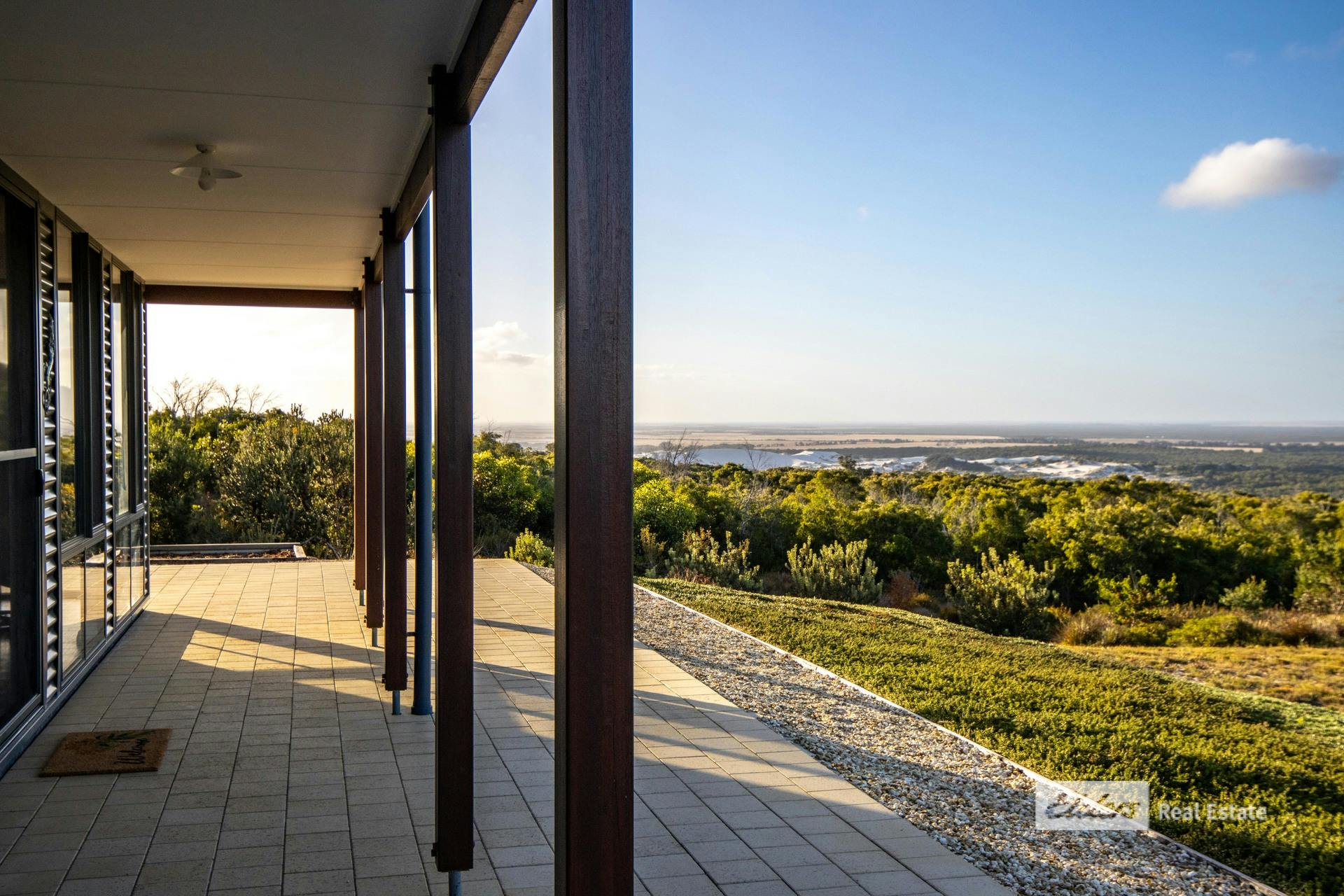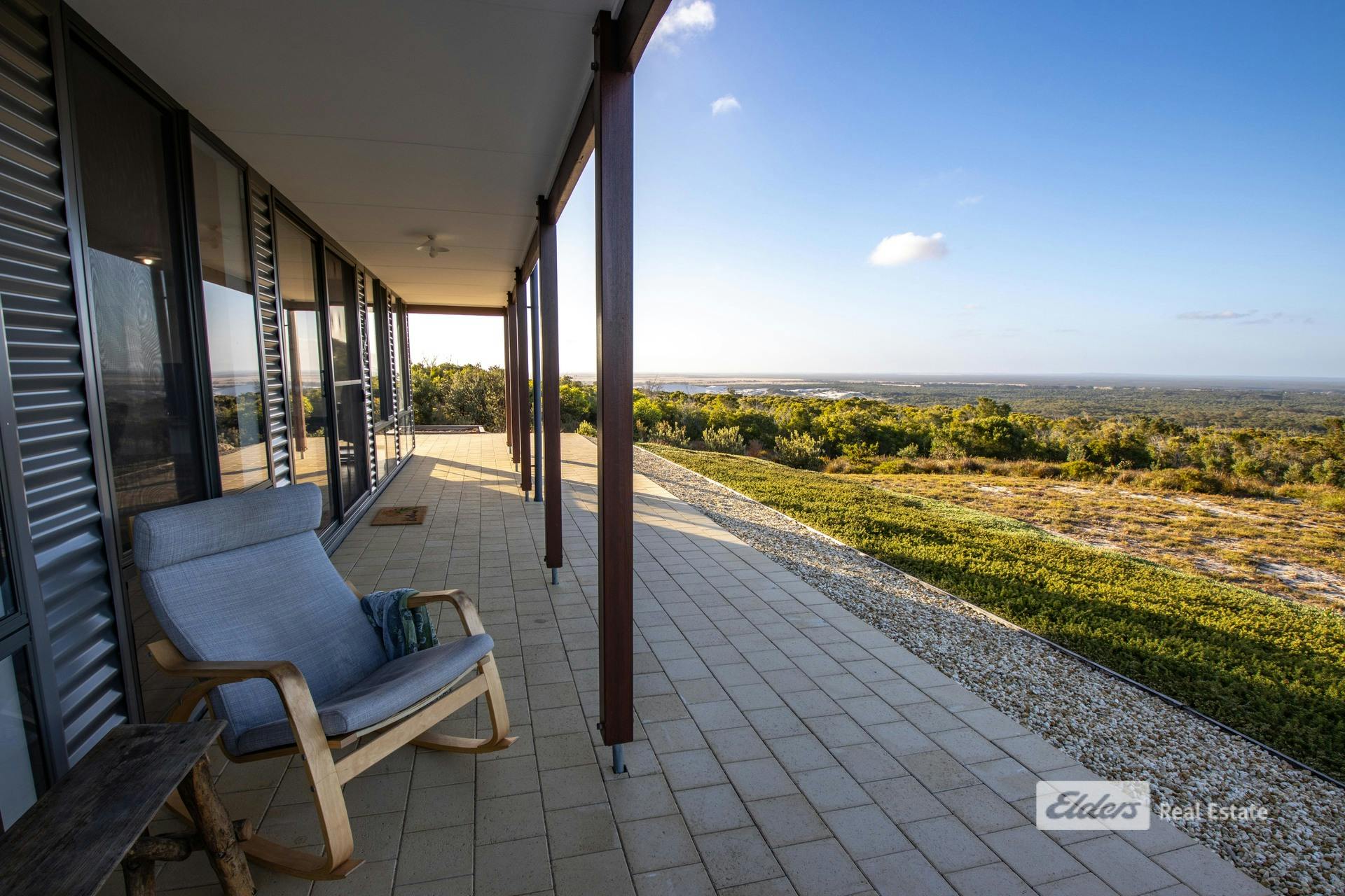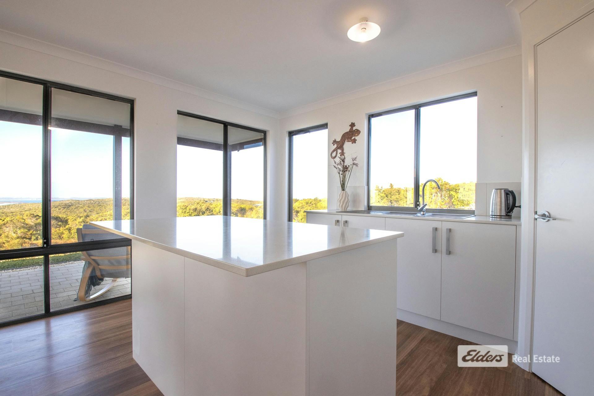 Commanding sweeping coastal and hinterland views from its elevated position at 75 Newbey Grove, this quality 2023-built Country Builders home delivers modern living with a simple, effective design perfectly suited to Bremer Bay. With a prized northern orientation, the outlook stretches east to Doubtful Islands Peninsula, across the glistening waters of Bremer Bay, West Mount Barren Ranges of the Fitzgeral River National Park behind, and westward to sand dunes-a truly spectacular panorama. You wont find a more peaceful and private location.Designed to embrace the views and natural light, the open-plan kitchen, dining and living zone forms the heart of the home. Stone bench tops and neutral tones add a sense of peace and simplicity. Light-filled and welcoming, it's a space made for relaxed coastal living-open the doors, breathe in the sea air, and enjoy ever-changing skies from morning to sunset.
