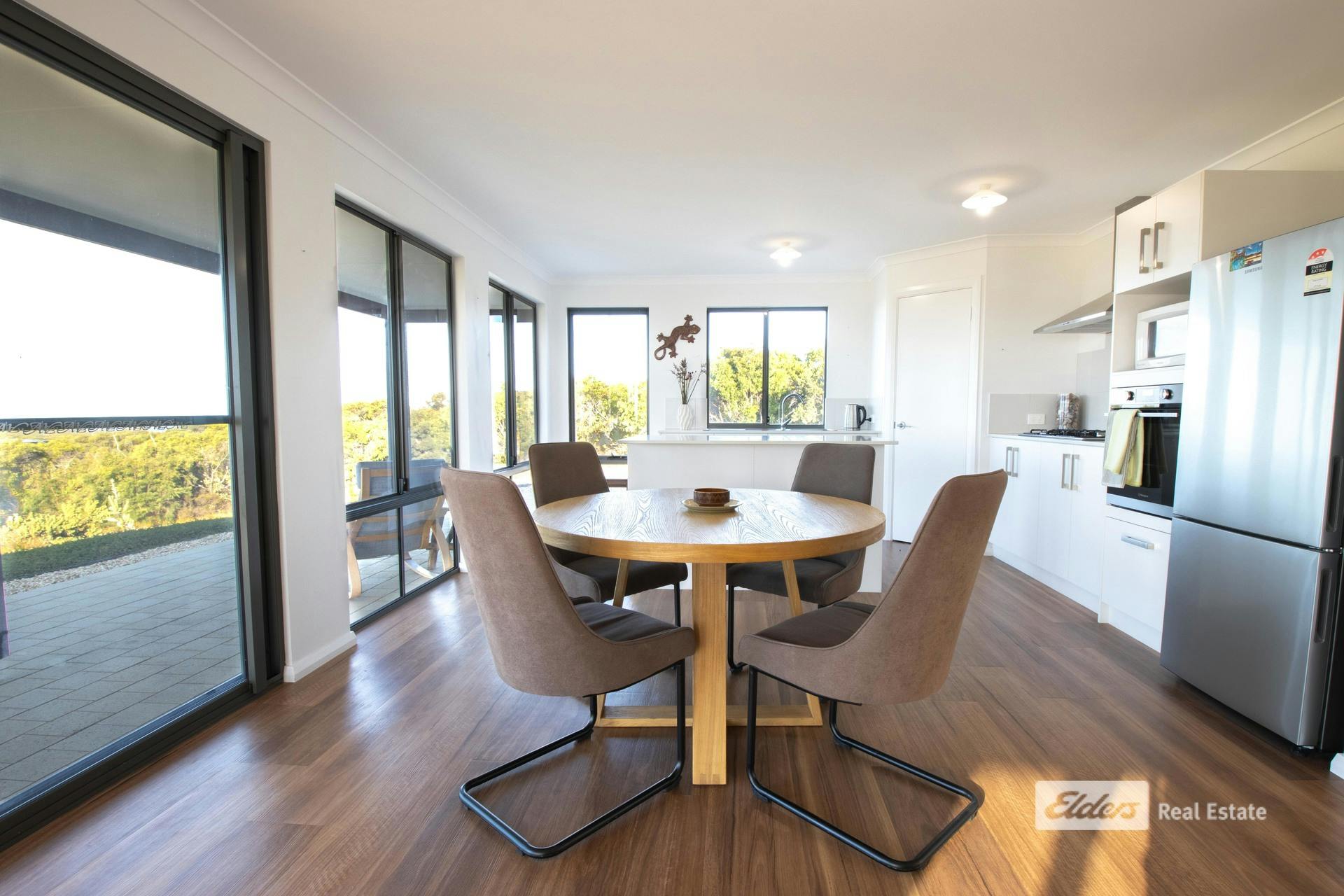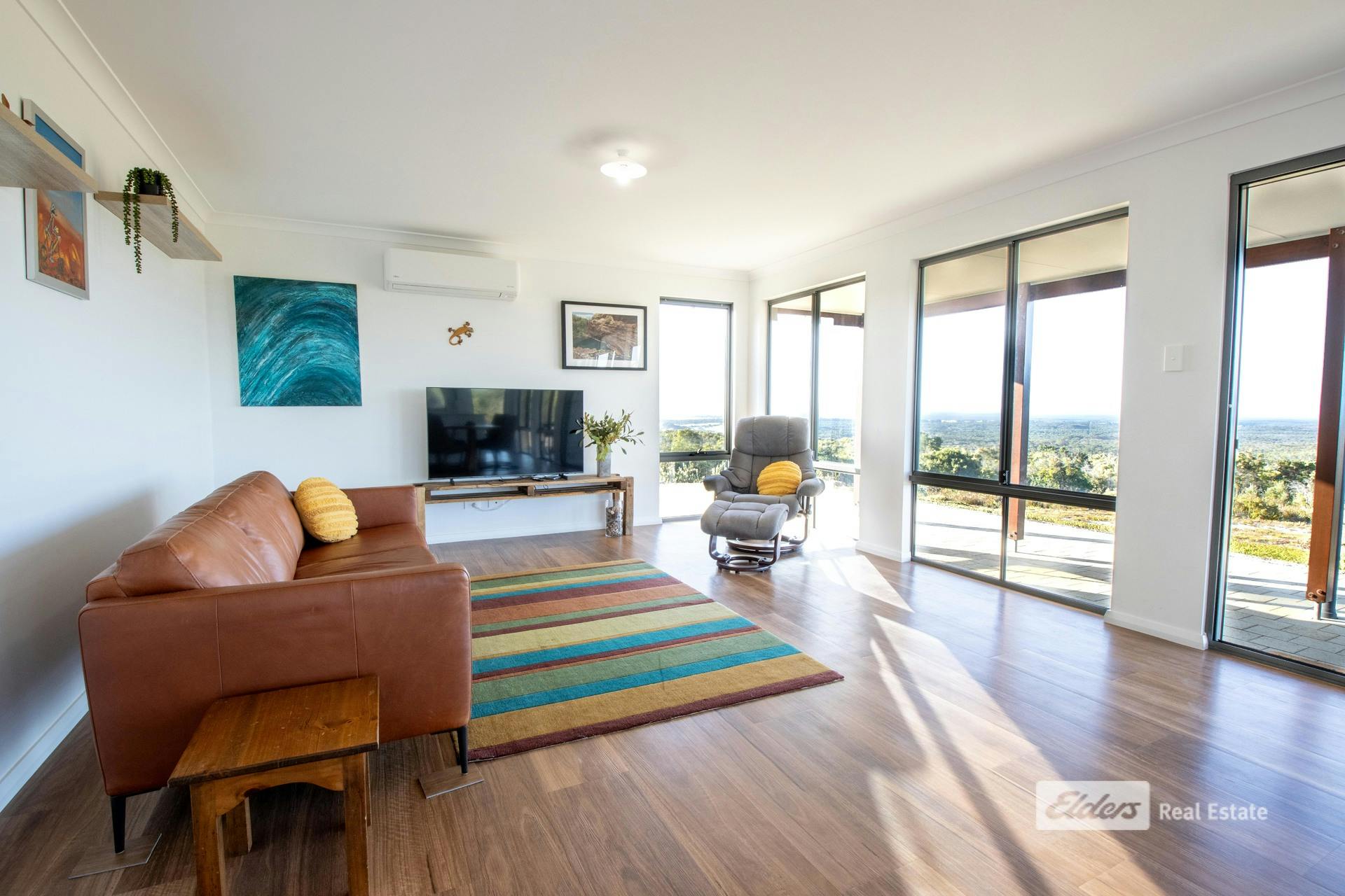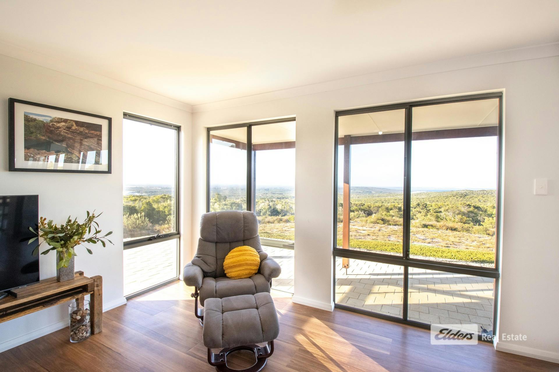 Commanding sweeping coastal and hinterland views from its elevated position at 75 Newbey Grove, this quality 2023-built Country Builders home delivers modern living with a simple, effective design perfectly suited to Bremer Bay. With a prized northern orientation, the outlook stretches east to Doubtful Islands Peninsula, across the glistening waters of Bremer Bay, West Mount Barren Ranges of the Fitzgeral River National Park behind, and westward to sand dunes-a truly spectacular panorama. You wont find a more peaceful and private location.Designed to embrace the views and natural light, the open-plan kitchen, dining and living zone forms the heart of the home. Stone bench tops and neutral tones add a sense of peace and simplicity. Light-filled and welcoming, it's a space made for relaxed coastal living-open the doors, breathe in the sea air, and enjoy ever-changing skies from morning to sunset.