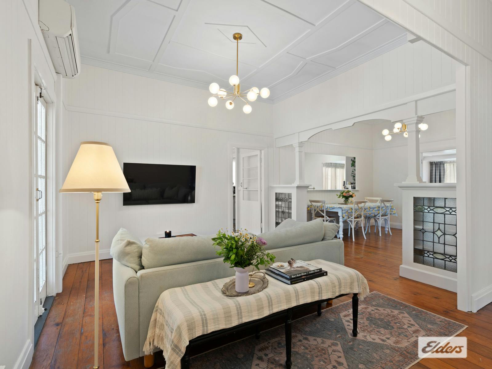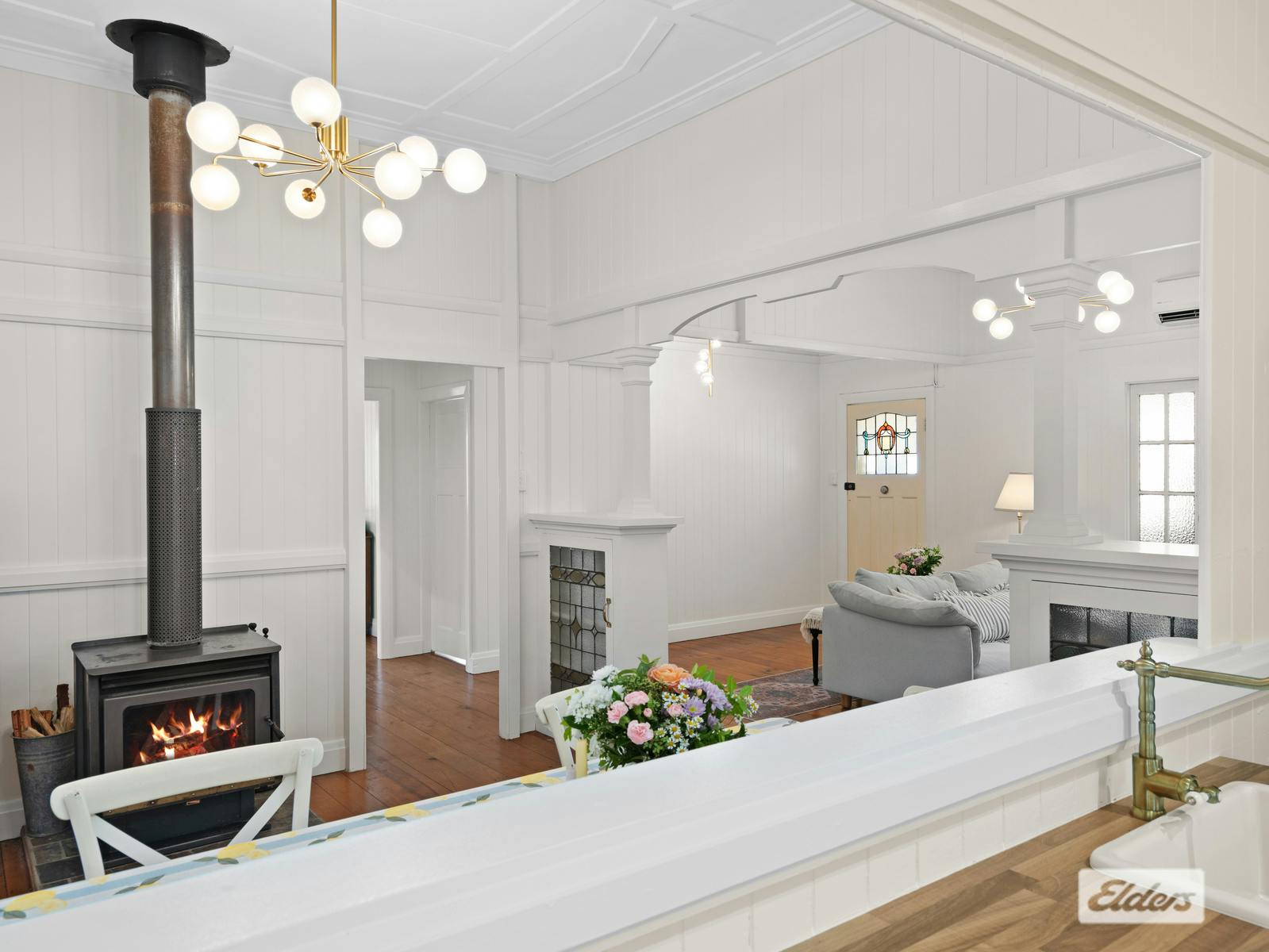 Th soaring ceilings, VJ walls, and stunning Hoop Pine floors immerse you in the classic charm of this beautiful timber home. The open lounge and dining area is a comfort year-round with both air conditioning and a wood fire heater.