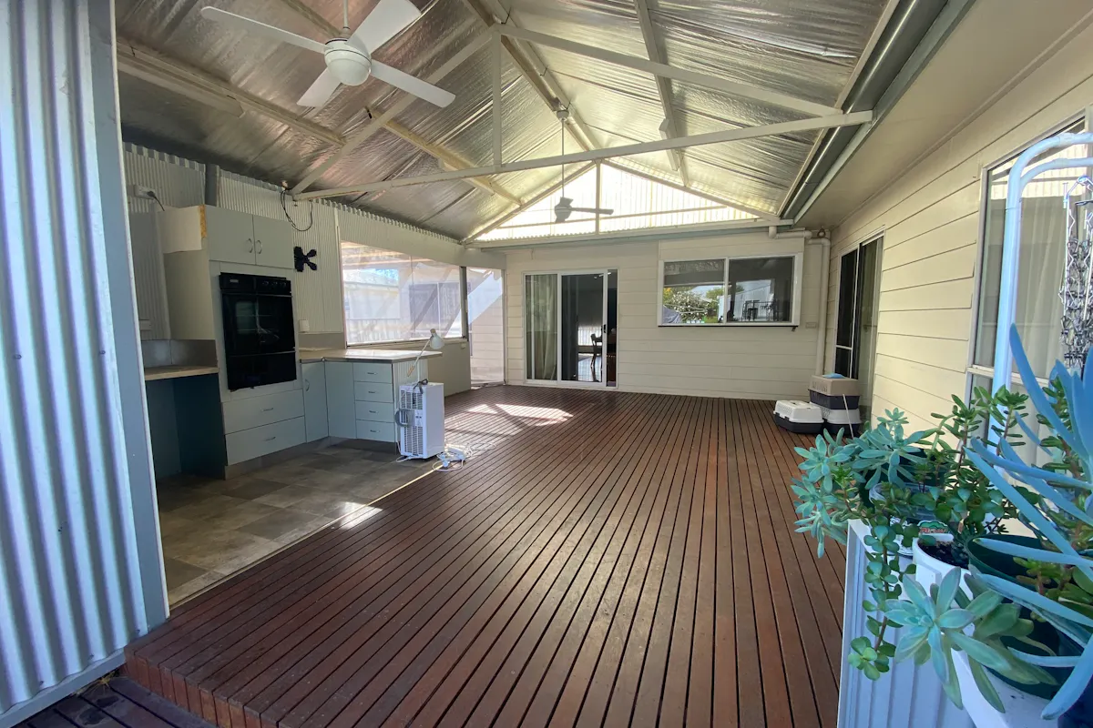Hidden away in a quiet residential area, this renovated low maintenance 3 bedroom hardi plank home has it all. Offering large open lounge, dining, living, kitchen area with split system & slow combustion heater. Modern kitchen has gas HP & elec U/Bench oven, D/W & walk-in pantry. Three large double bedrooms, walk-in robe & full ensuite to master; sep office; renovated bathroom has sep shower, spa bath & vanity. New int laundry with storage; sep toilet. Inviting rear timber deck entertaining room featuring full outdoor kitchen with elec W/O & rangehood for BBQ, sliding blinds to weatherproof your outdoor area. Large steel frame garage, workshop with rollerdoor access, S/C heater & evap a/c; side storage skillion. Full length triple carport on side of house. Steel security window shutters. Immaculate decor internallyFeatures