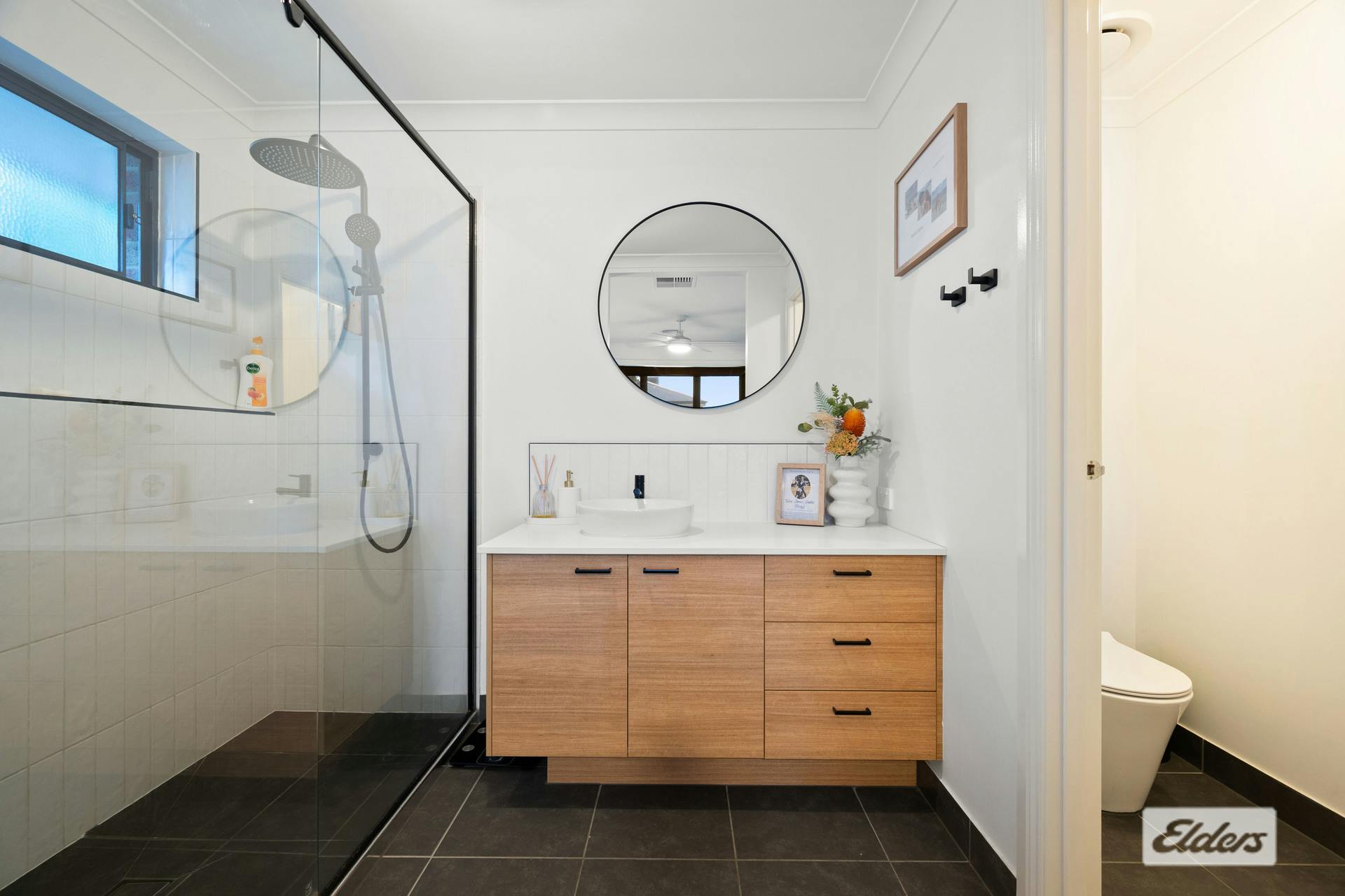 Accommodation includes four generously sized bedrooms, all with ceiling fans. The master suite is a true retreat with double walk-in robes and a sleek ensuite with separate toilet. The remaining three bedrooms offer built-in mirrored robes and are serviced by a well-appointed full family bathroom.