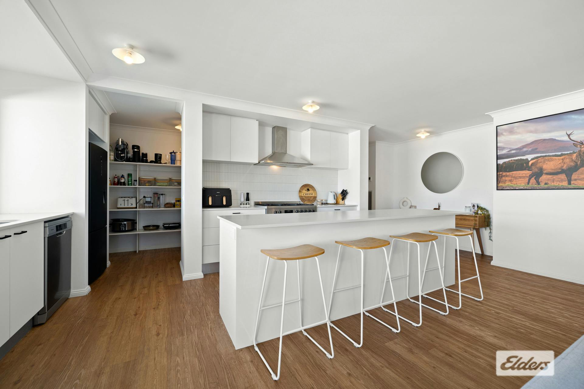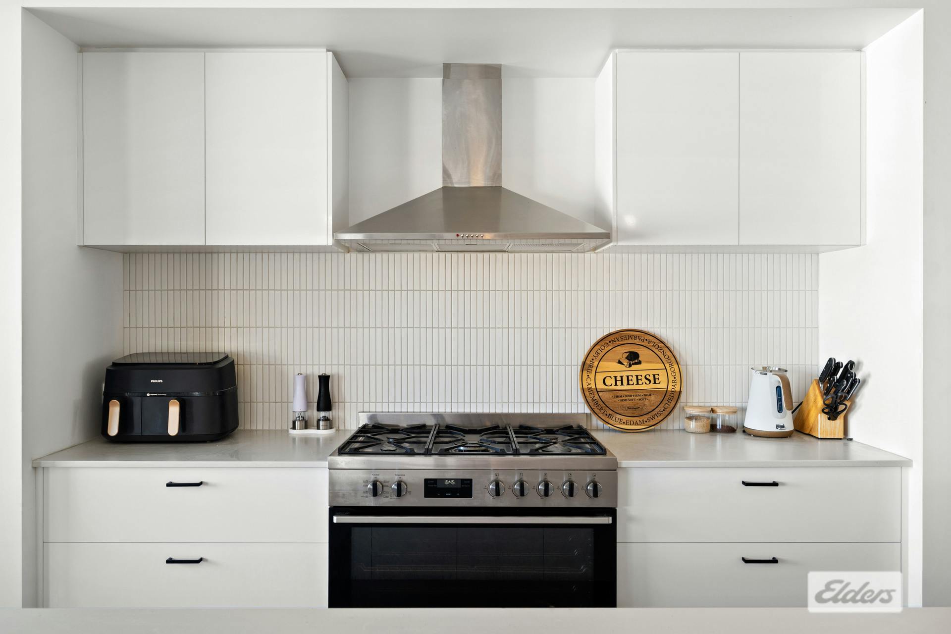 The chef's kitchen is both stylish and practical, featuring stone benchtops, walk in pantry, KitKat tiled splashback, 900mm gas freestanding oven, dishwasher and quality fixtures, all complemented by excellent storage.