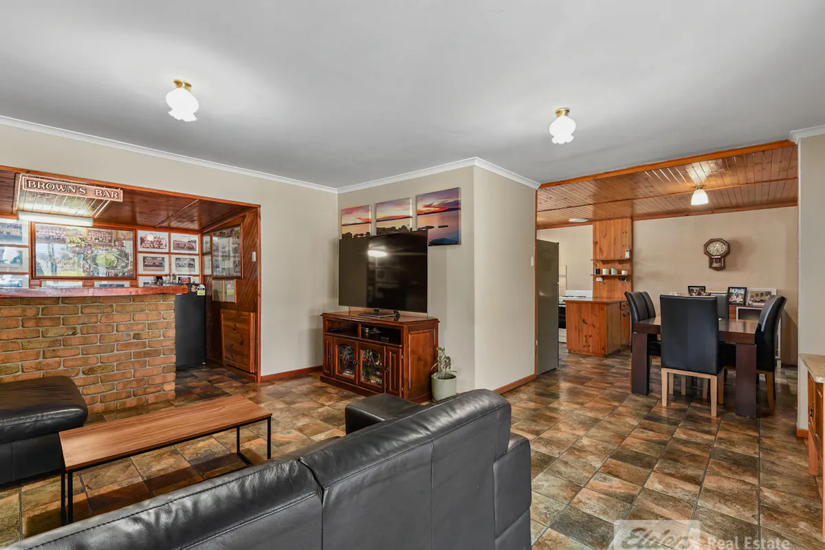 The home welcomes you via a front patio, with sliding door access into the spacious family room or side entry into the main entrance. The generous family room features a built-in bar, reverse cycle split system, and durable lino flooring that flows seamlessly into the meals area and kitchen.