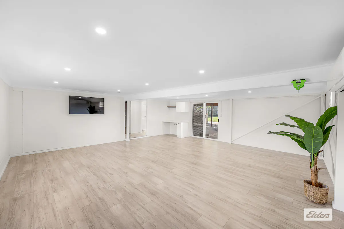 Step outside and enjoy the stunning full-length timber deck, seamlessly extending from the living area. This impressive space is perfect for entertaining guests or simply relaxing while overlooking the backyard.