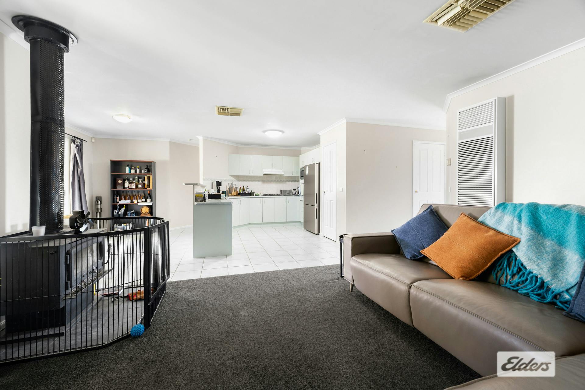 Inside, the spacious and functional kitchen sits at the heart of the home, offering plenty of room to cook, prep, gather, and chat. It flows naturally into the dining area, making mealtimes feel social and effortless. The adjoining lounge is cosy and inviting, anchored by a charming wood fireplace that's perfect for winter evenings - that curl-up-with-a-throw kind of comfort.