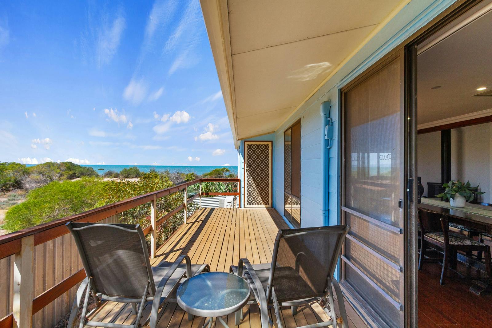 Step from the central living zone onto the deck, where you can enjoy your morning coffee or relax with a sunset meal accompanied by the calming sound of the waves.