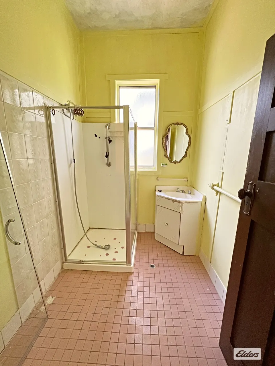 Bathroom with shower, vanity and separate toilet. This home has multiple storage rooms and filled in verandah that could be reconfigured into another bedroom or living space. Original laundry with concrete trough, access to the rear yard and clothesline.
