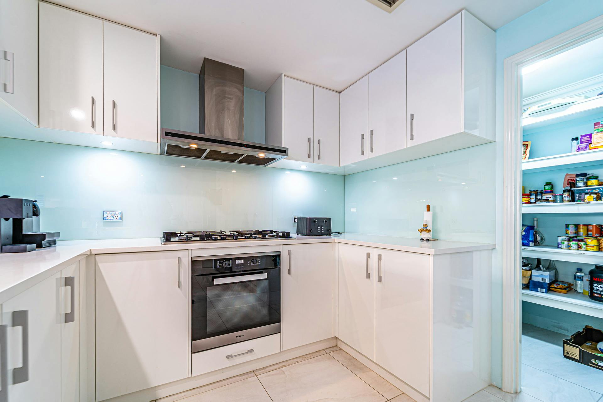 Luxury kitchen with stone benchtops, extensive storage space, and quality stainless steel appliances