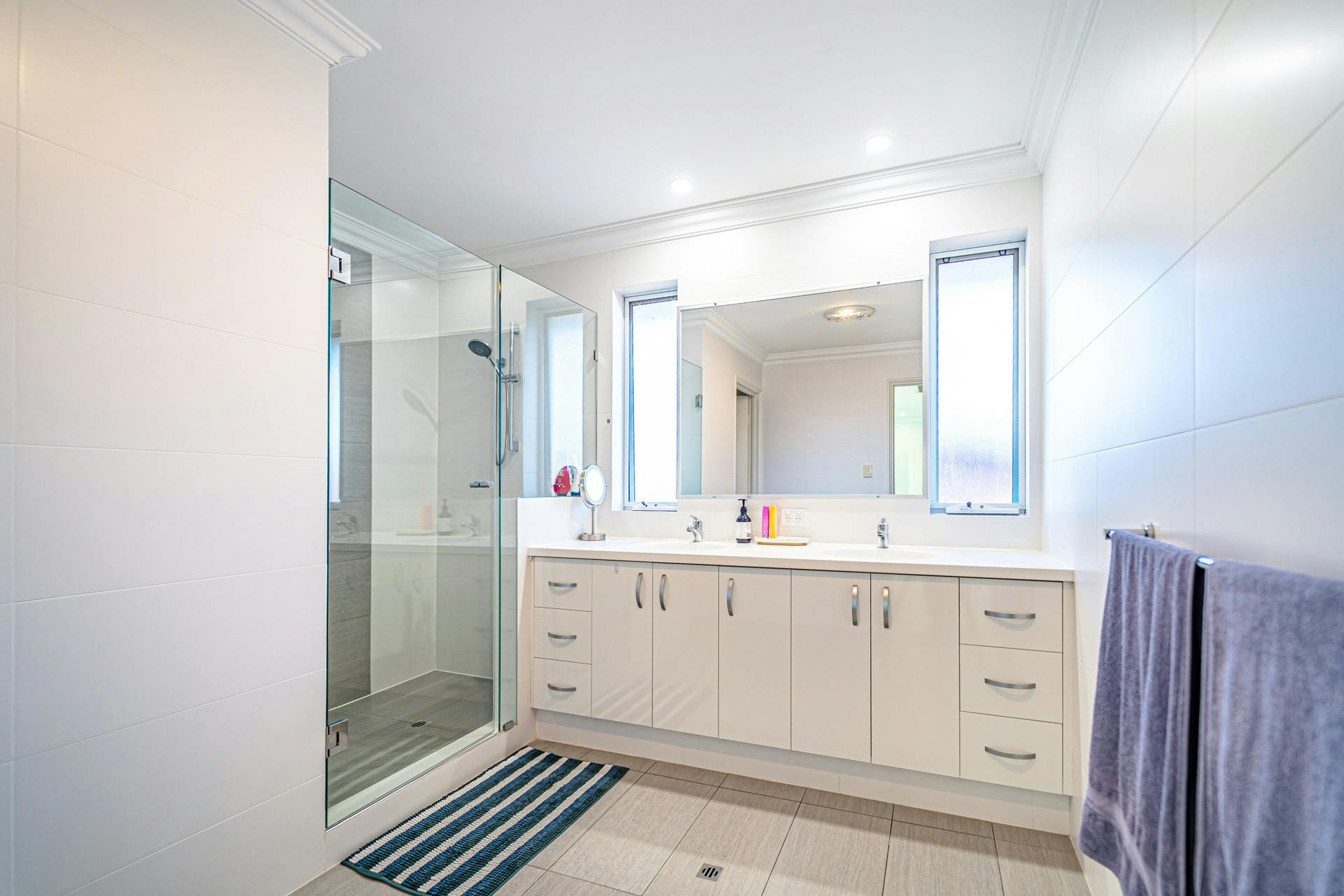 4 Bedrooms (Master bedroom with built-in robes and ensuite with double vanities, toilet, and walk-in shower, Minor bedrooms all with built-in robes)