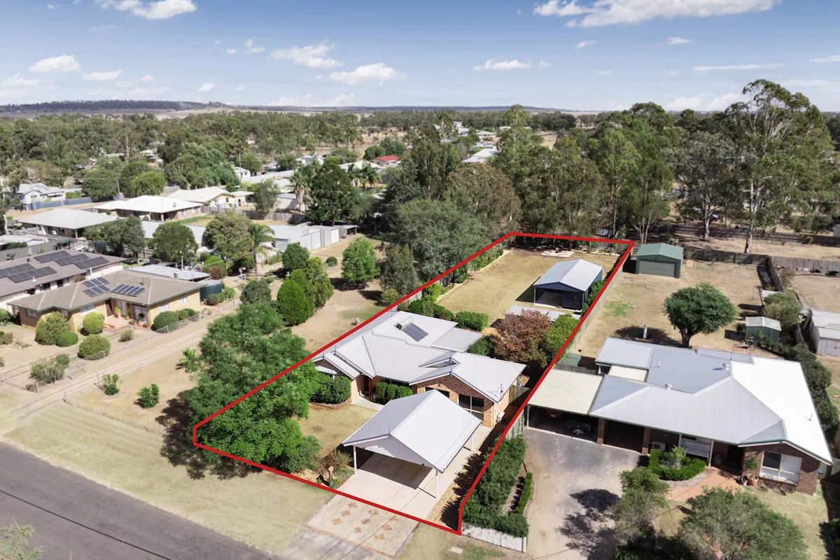 Welcome to 8 Mason Street, Oakey – an immaculately presented Arden Vale home offering space, comfort, and versatility for the whole family.Set on a generous 1,500m² allotment in a quiet, predominately well cared for owner-occupied street, this property delivers the perfect blend of indoor and outdoor living, surrounded by established trees and peaceful country-style gardens.