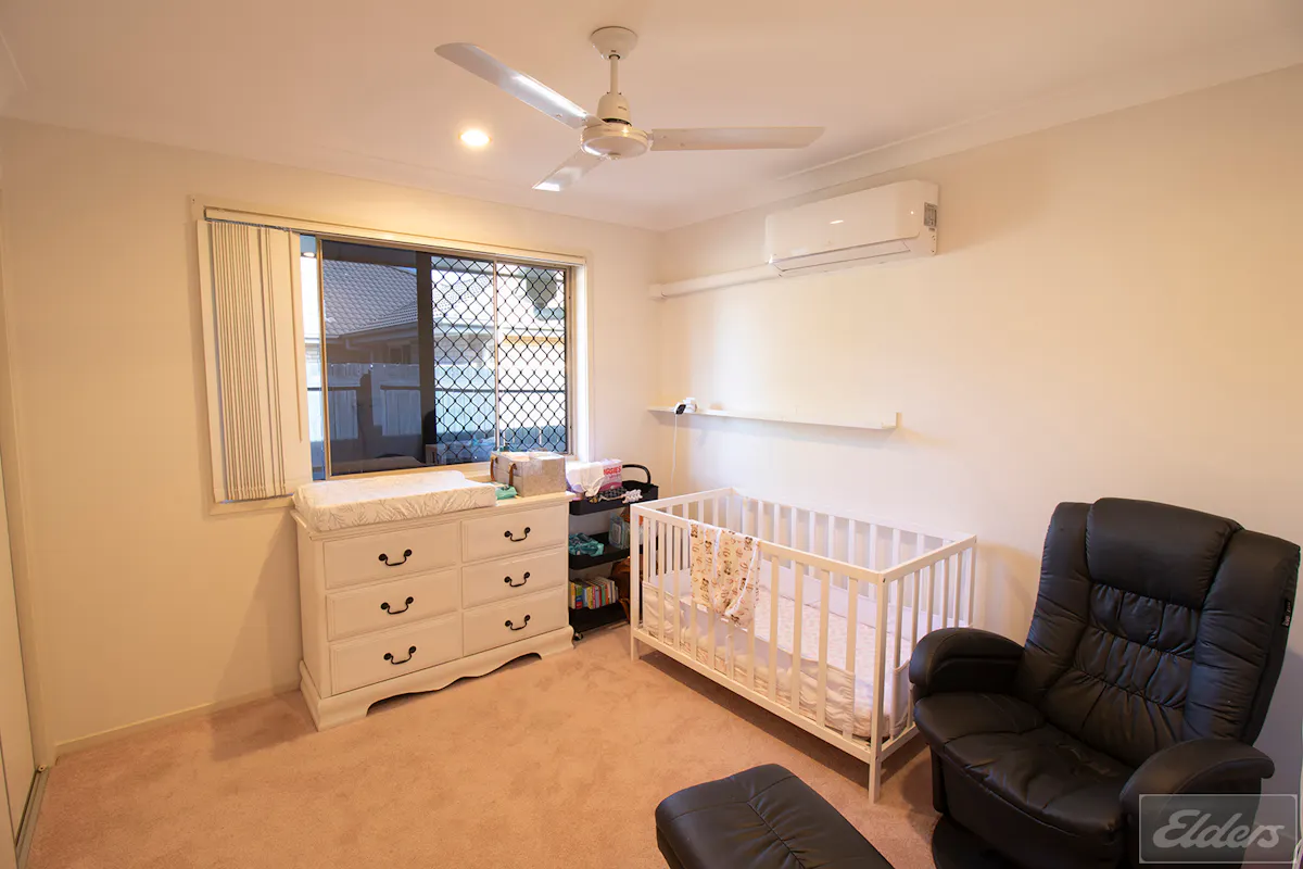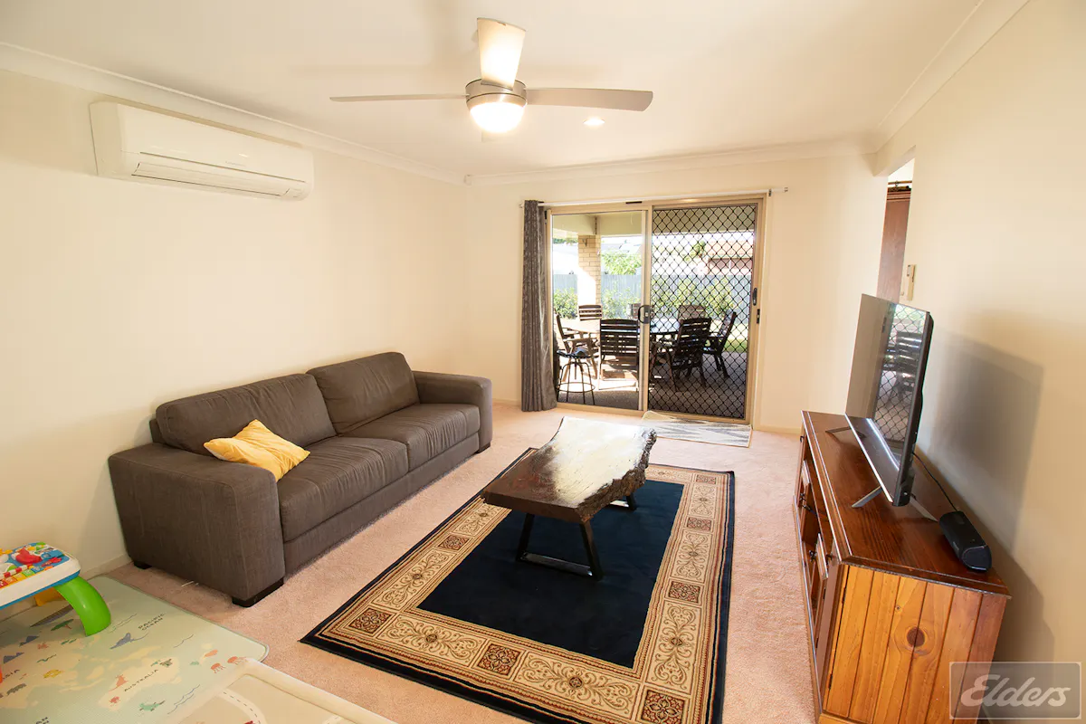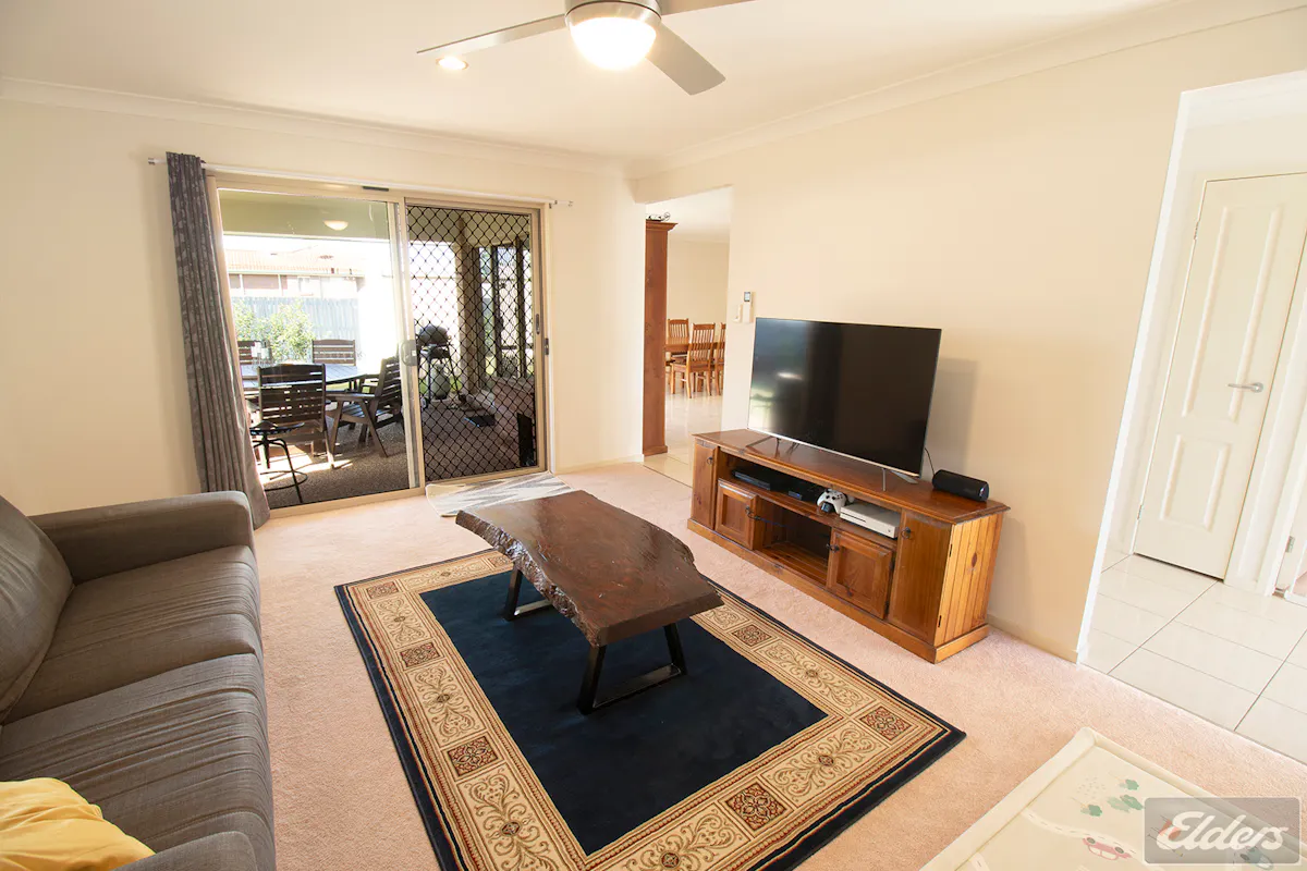 Immaculately presented and freshly painted, this inviting family home offers a warm and welcoming feel, combining modern comfort with thoughtful features and a relaxed, homely atmosphere throughout.Upon entry, a spacious two-way lounge with plush carpet, air conditioning, and ceiling fan welcomes you, offering direct access to the covered alfresco area and creating a seamless indoor-outdoor connection. Positioned opposite the lounge at the front of the home is a bedroom - ideal for guests or a home office.