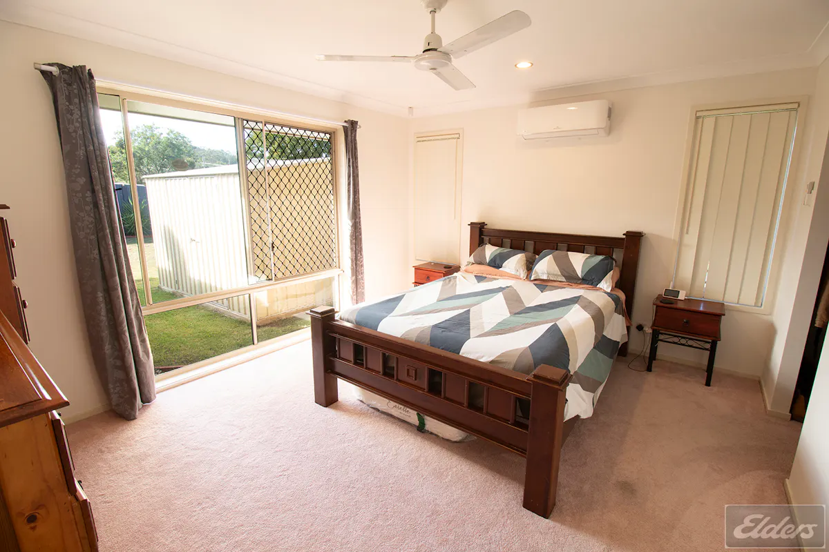 The generous air-conditioned master suite features large windows with a view to the back yard, a walk-through robe, and private ensuite. The remaining bedrooms include built-in robes, fans, and one has an air conditioner. The home is serviced by a well-appointed bathroom with bath, shower, and separate toilet.