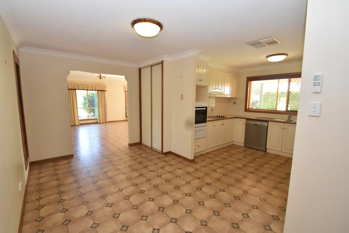 A sizeable dining area and spacious kitchen is fitted out in neutral cabinetry, abundant bench and cupboard space, pantry, electrical appliances including cook top, wall oven and dishwasher and space for a large refrigerator.