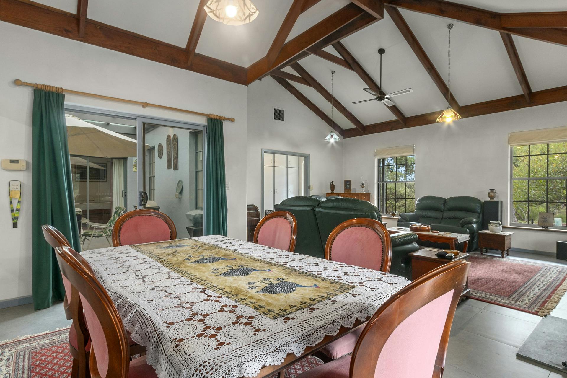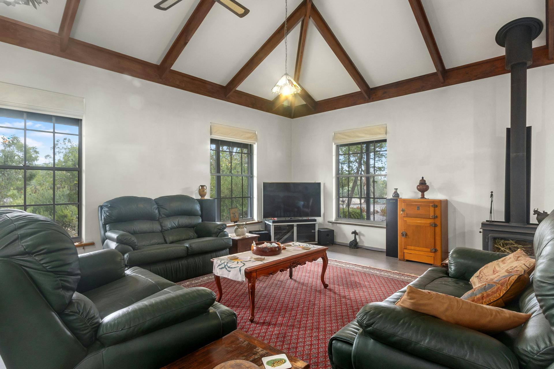 Year-round comfort is assured with ducted reverse cycle air conditioning, complemented by a slow combustion fireplace for cosy winter nights. Practical features abound, including a large six-car carport, an expansive workshop/garage ideal for trades, hobbies or storage, and approximately 60,000 litres of rainwater storage. A 3kW solar system further enhances the home's efficiency and sustainability.