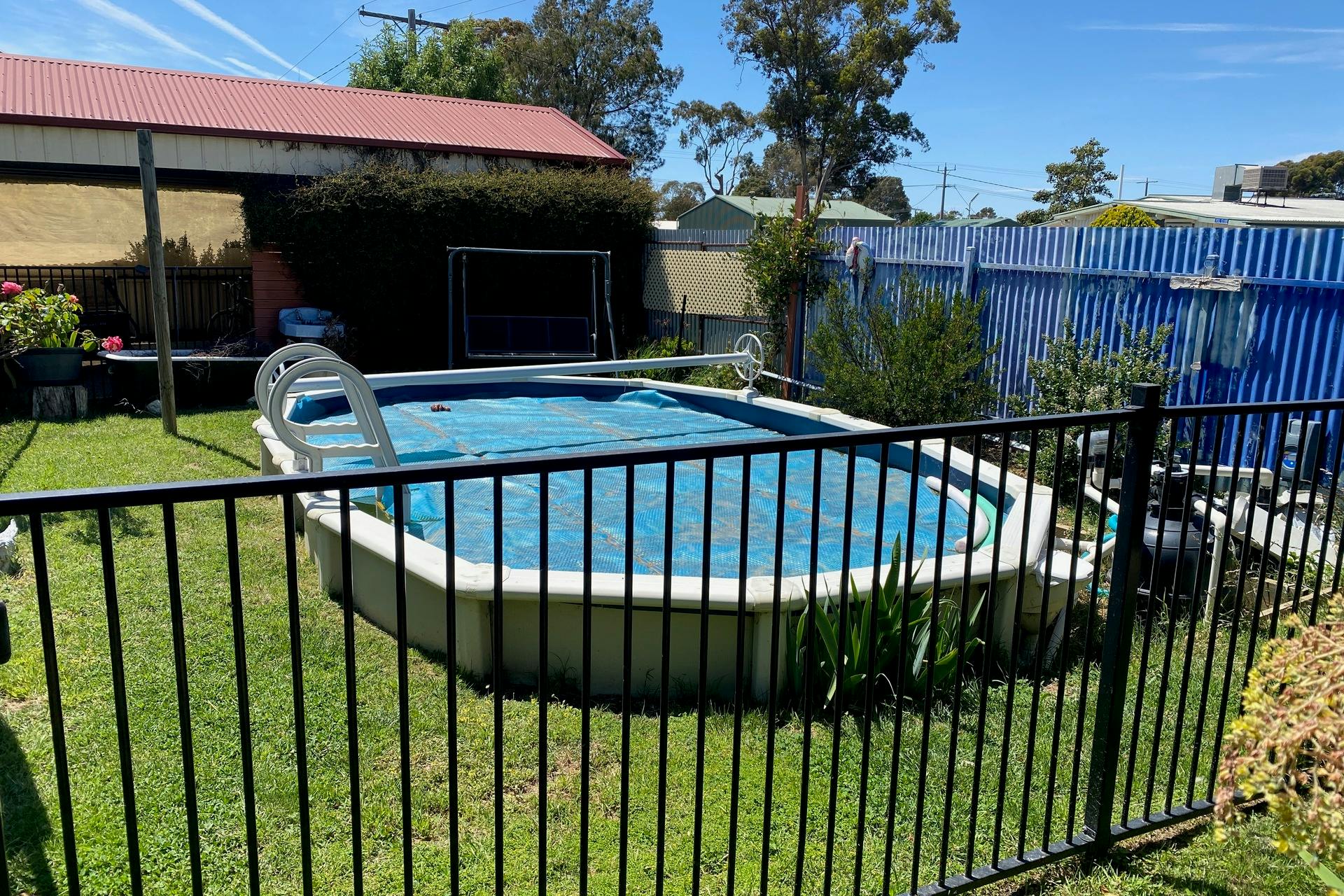 Undercover fernery, BBQ area, above ground pool. Large Colorbond shed at rear featuring side access carport with roller door. Lined bungalow guest room with refrigerated air conditioning and storage shed with roller door. Side carport. Garden shed.