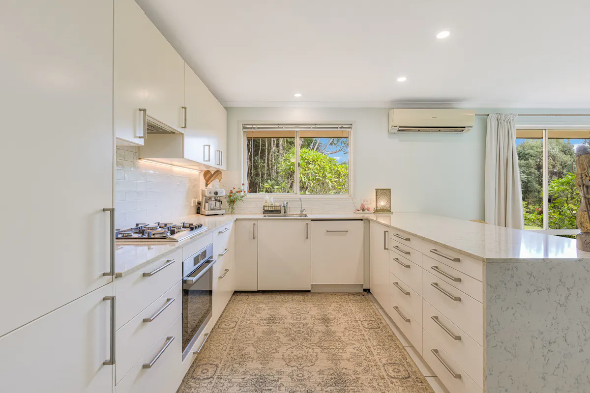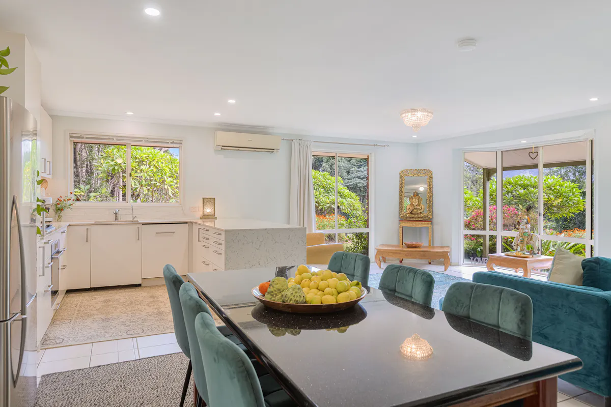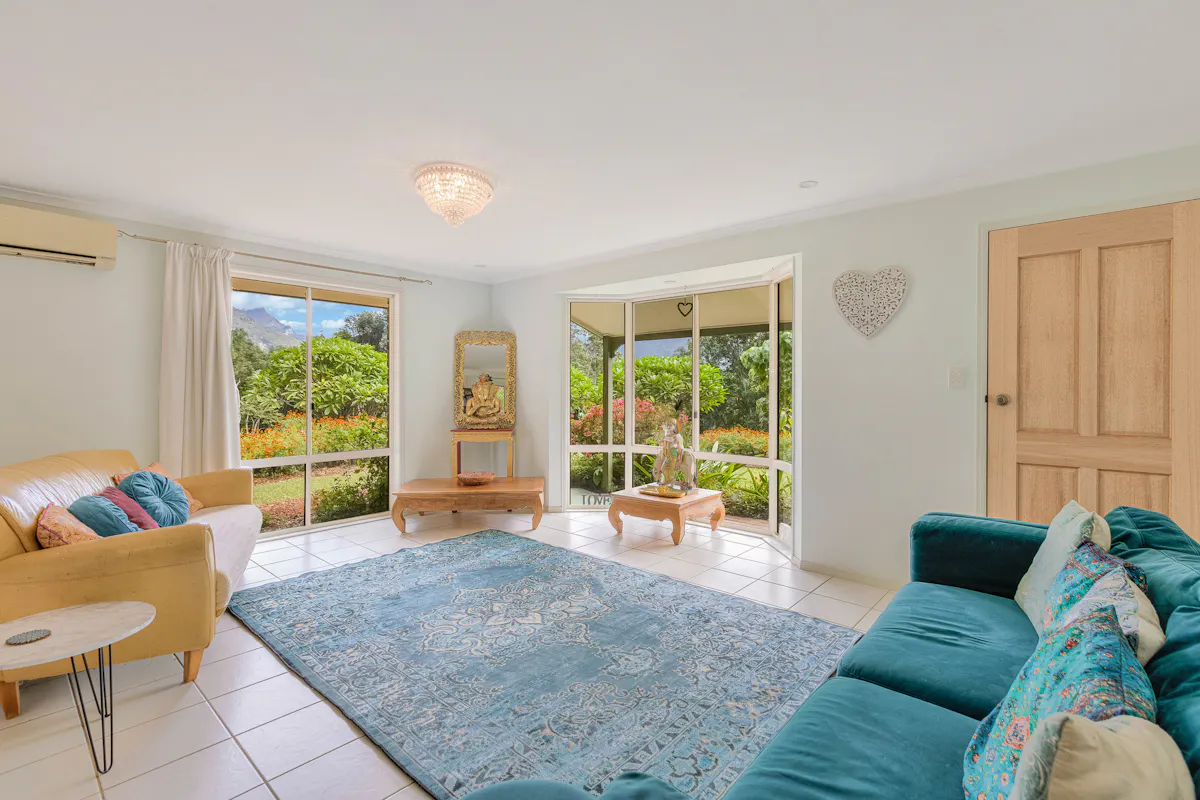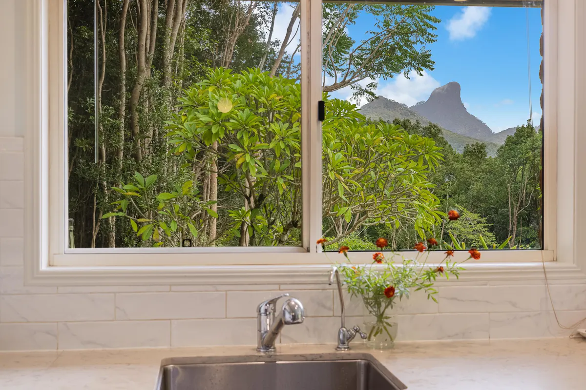 Privately tucked away from the street and embraced by magnificent mountain surrounds, this warm and welcoming residence offers a peaceful lifestyle where every window frames a beautiful outlook. Set in an elevated northerly position, the home captures natural light, cooling breezes and a true sense of calm, creating a place you'll love coming home to.Move-in ready and beautifully presented, the home has been designed for relaxed everyday living, with a flowing open-plan layout that connects effortlessly to the surrounding landscape. Leafy vistas and mountain views create a calming backdrop throughout, while the peaceful setting invites you to slow down and enjoy the lifestyle on offer.