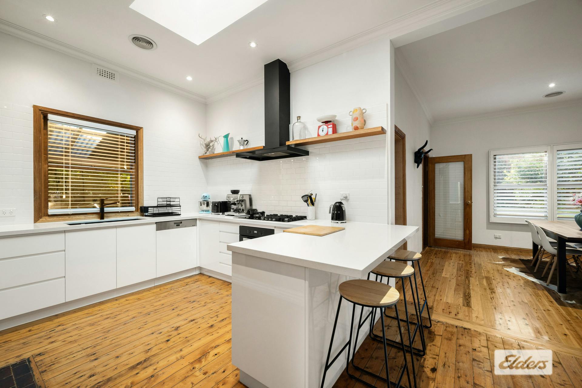 Three generous bedrooms and two living zones set the tone for family life, work-from-home setups, or simply spreading out. The kitchen blends old and new with confidence-its original wood oven a centrepiece, supported by modern appliances including a gas cooktop, electric oven, and a skylight that brings soft, natural illumination through the space.