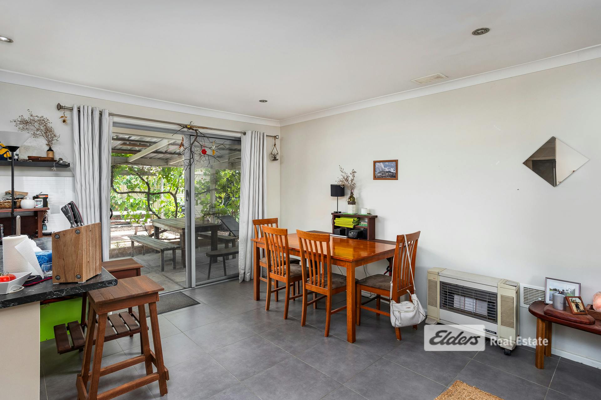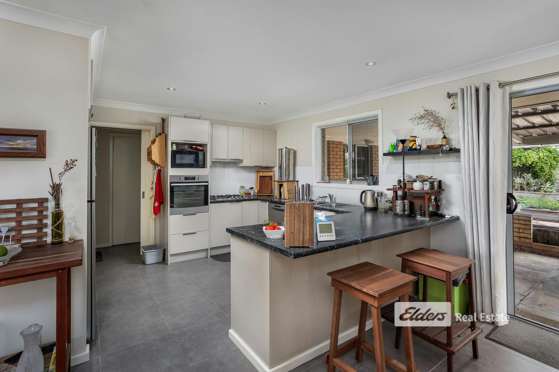 The light, functional kitchen provides loads of bench and cupboard space, plus a dishwasher, electric wall oven, and gas cooktop. It overlooks the patio and backyard, allowing you to stay connected with family or friends while you cook. The open-plan living and dining area includes tiled floors for easy upkeep, a gas bayonet for instant warmth, and a Scandia woodfire heater with a three-speed fan to keep the home cosy through winter.