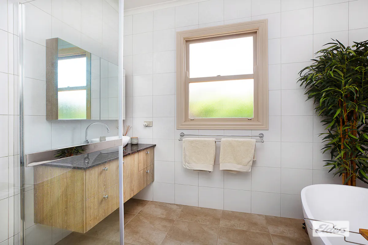 For year round comfort ducted heating has been installed, the kitchen, dining area has a reverse cycle split system and all four bedrooms have ceiling fans. The master bedroom at the front of the house has a walk-in-robe and modernised ensuite with a polished stone vanity top, the same as the bathroom at the other end of the home which has a deep freestanding bath and services the other three bedrooms, all of which have built-in-robes. Let's not forget the ever important separate toilet and good sized laundry.
