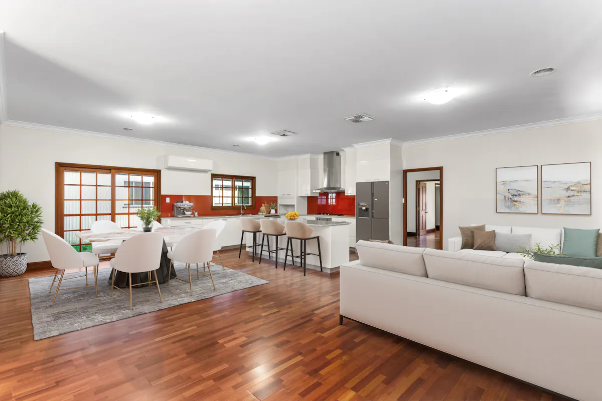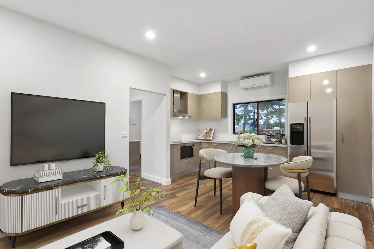 - 64m2 open-plan family living/entertaining area