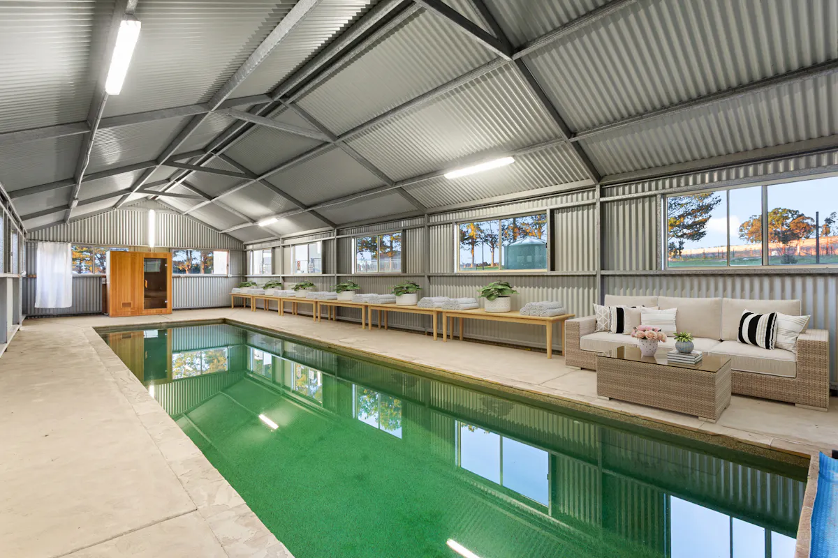 If you're into aquatic fitness and poolside entertainment, there's a 16x6m Colorbond pool shed that houses a fantastic 12x3m heated lap pool and sauna. The pool is 1.4m deep and has easy access steps, making it ideal for any age group.