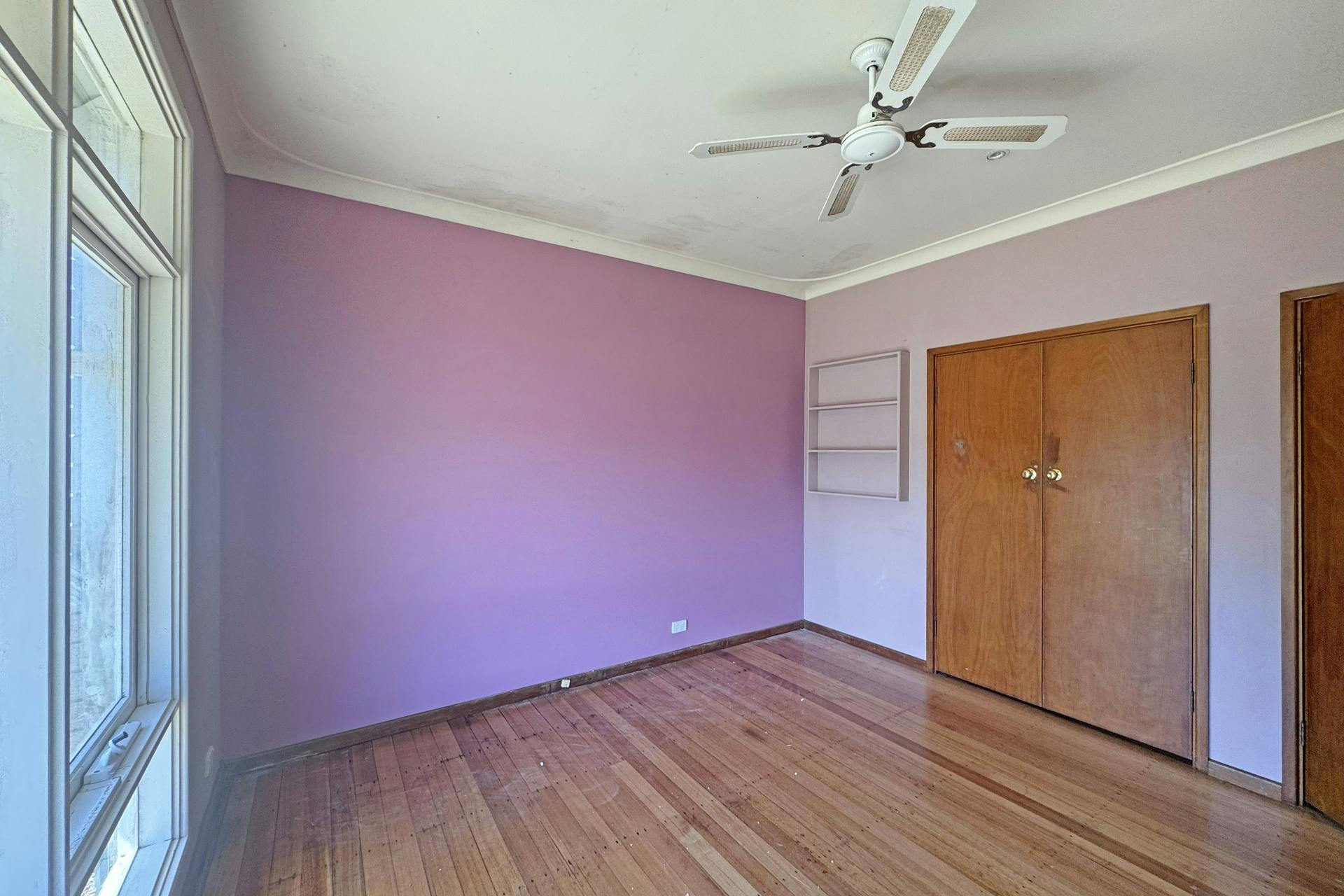 - Bedroom 1, wooden floorboards, double built-in robe, ceiling fan