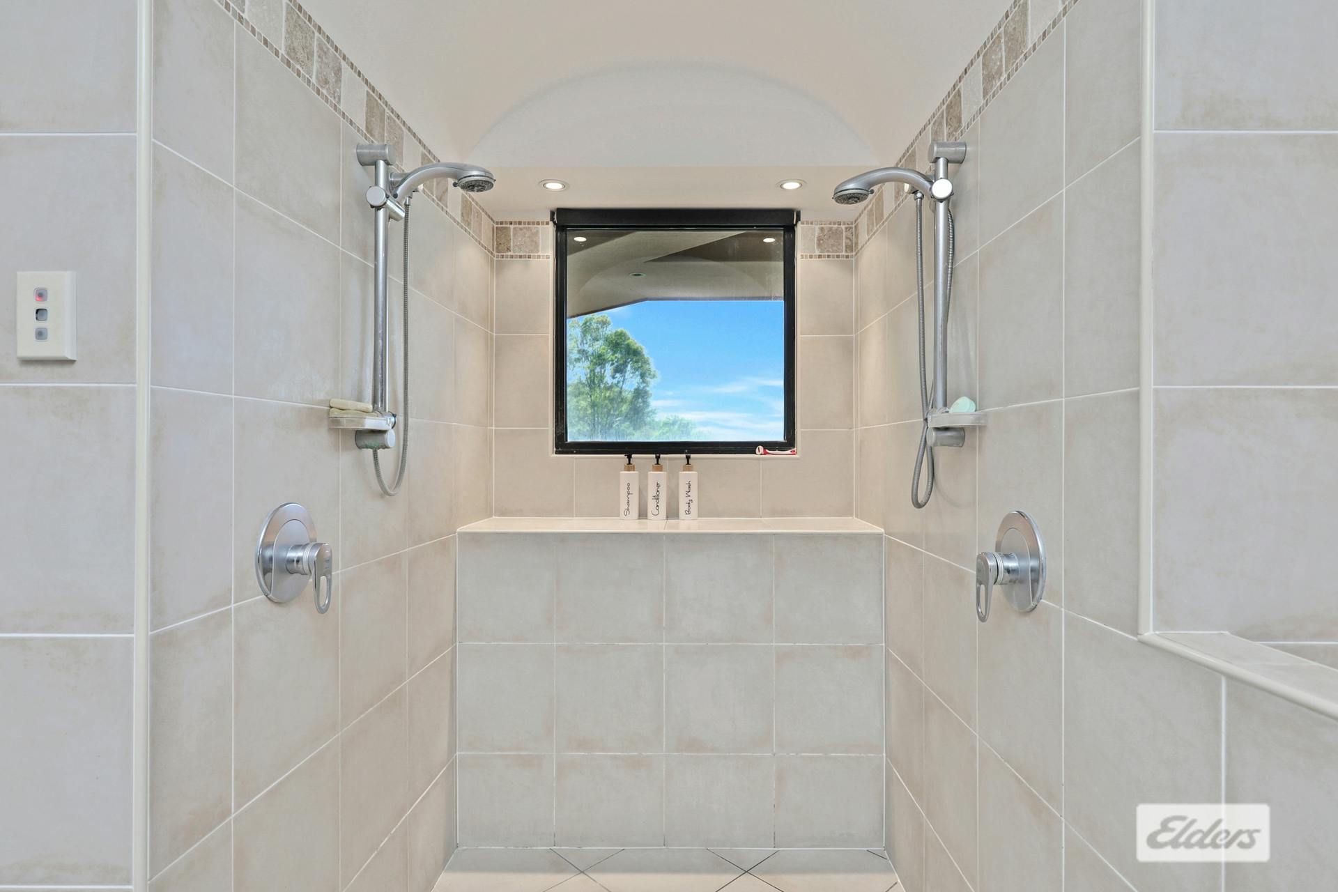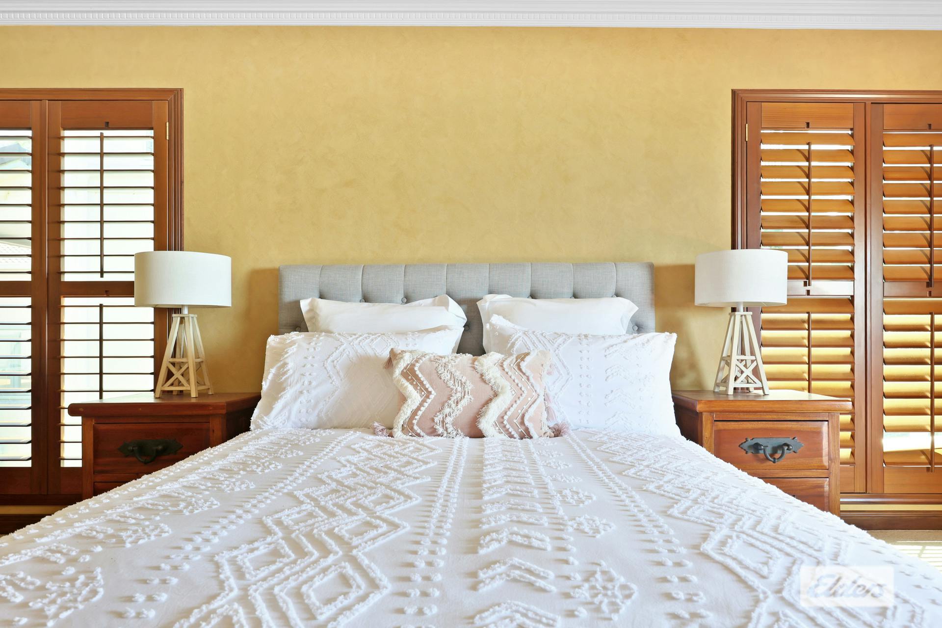 Luxurious master suite with spa ensuite, double shower, and cedar shutters