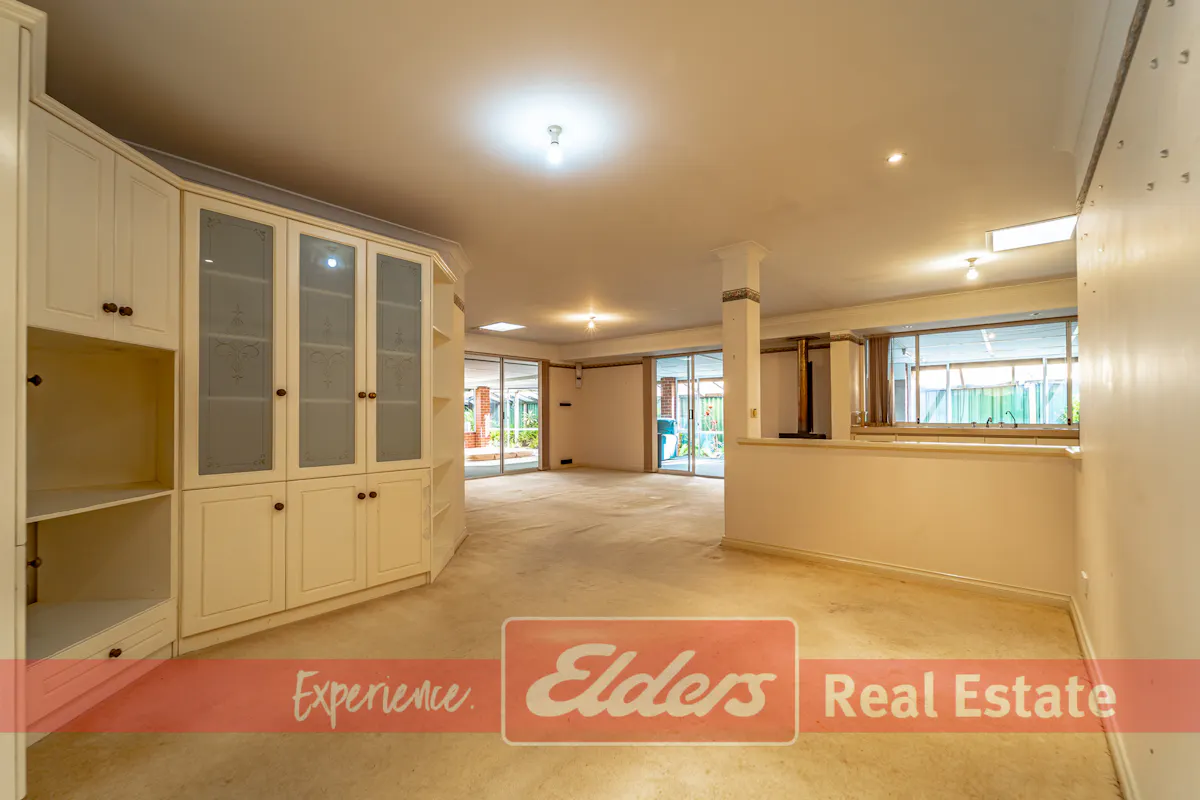 Offering plenty of potential, this great family home features 4 good sized bedrooms plus a study, two separate living areas, a kitchen with heaps of storage space and a large enclosed patio with a BBQ recess and exhaust fan, perfect for outdoor entertaining.Additional features include split system reverse cycle air-conditioning in the family area for year-round comfort, a slow combustion woodfire heater to keep warm in the colder winter months, and a large storage shed, for additional storage space.
