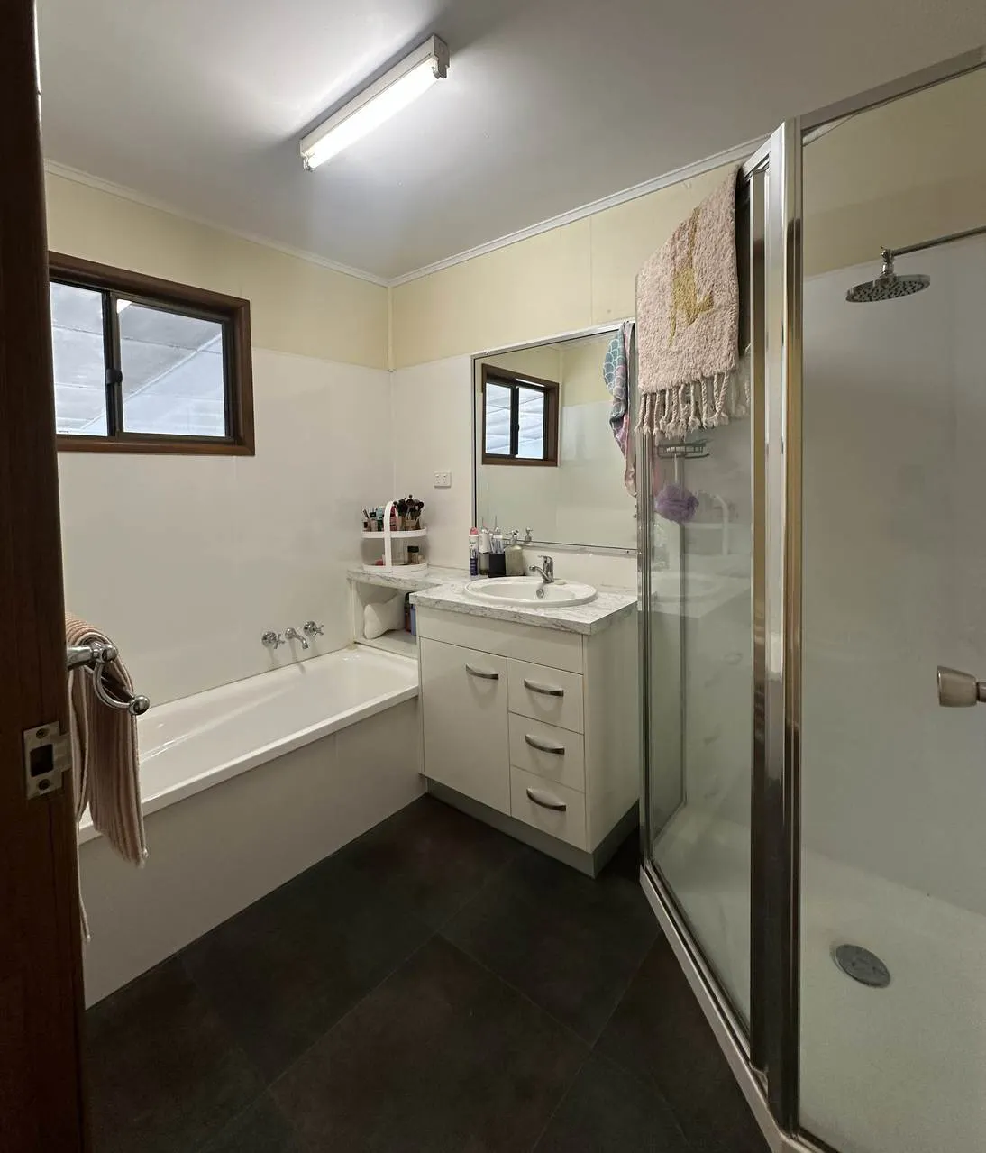 1 bathroom with shower, bath & vanity