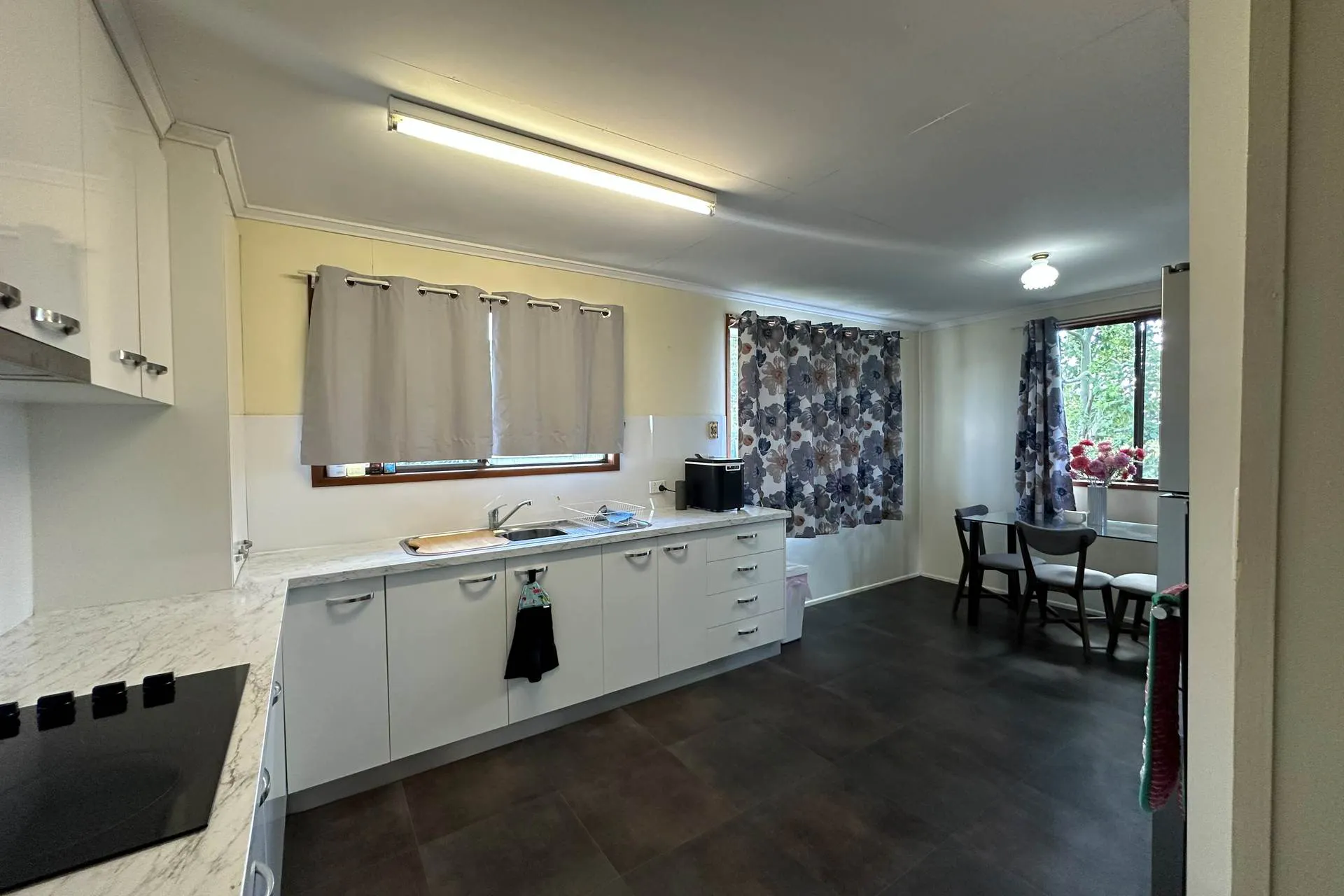 Open-plan living and dining area, reverse cycle air-conditioning