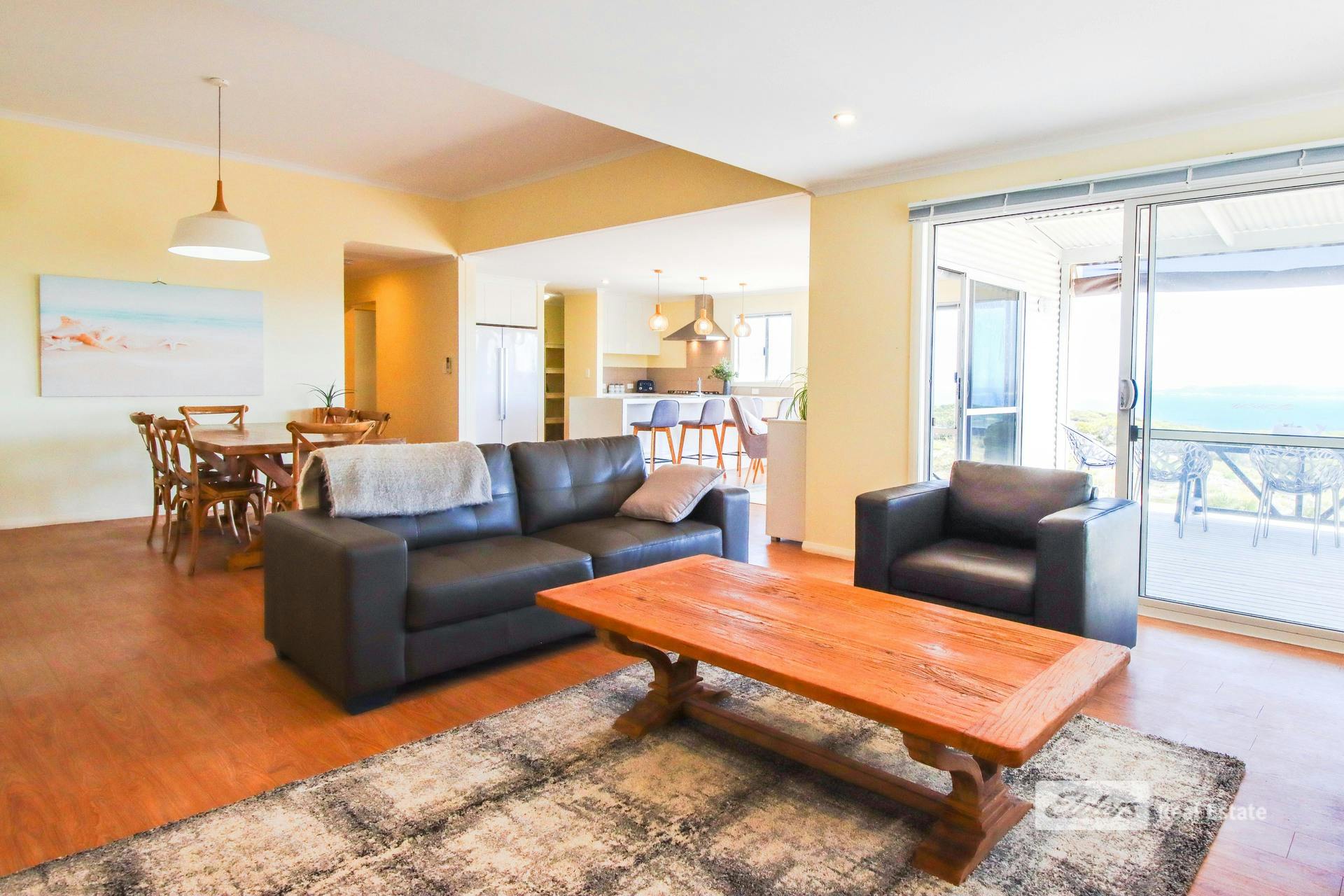 Commanding spectacular views across Dillon Bay from its elevated position on Native Dog Beach Rd, this immaculate 4x2 McGrath home (built 2015) delivers effortless coastal comfort - offered walk-in walk-out with tasteful modern furniture and quality fixtures throughout. Simply arrive, unpack, and start living.Designed to enjoy this tremendous outlook, the open plan kitchen, dining and living zone forms the heart of the home. Pour a glass, step outside, and watch the sky blaze as the sun disappears over Dillon Bay. Every gathering is framed by ocean blues.
