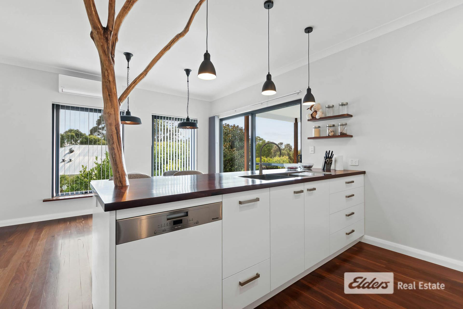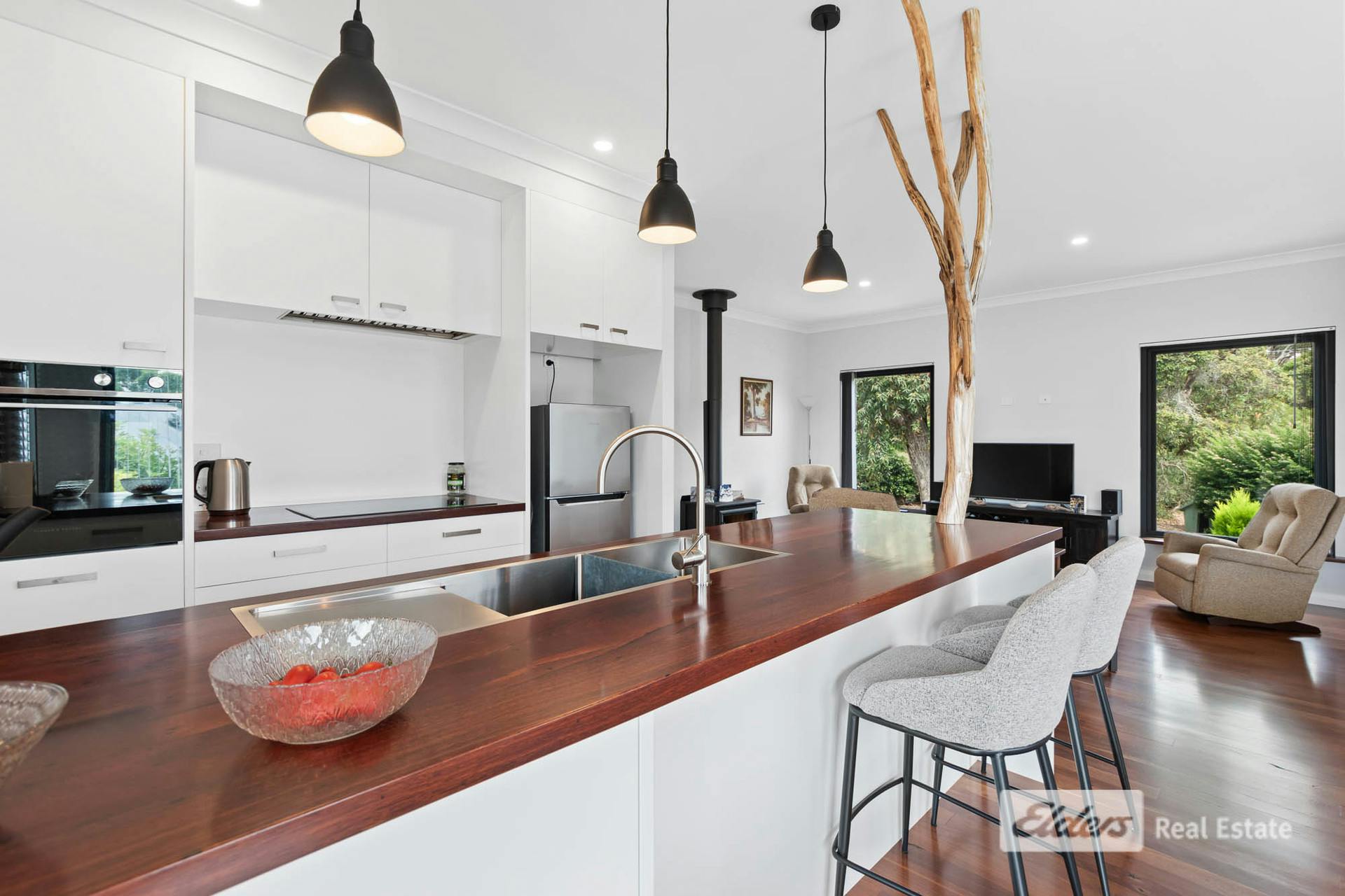 • Open-plan kitchen, dining, and living with reverse-cycle air-con and wood fire