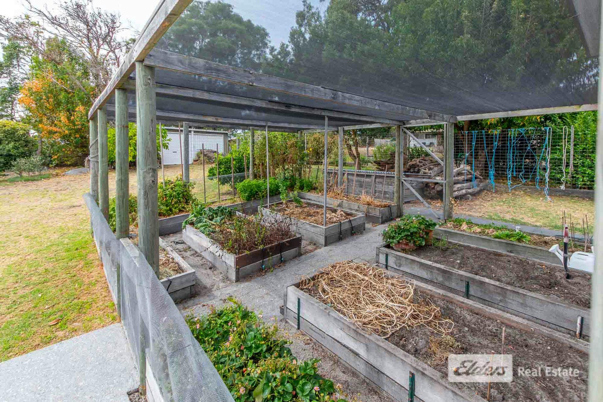 Gardens here are brilliant, green and verdant, with a huge array of fruit trees and a superb veggie area. A powered double garage/shed at rear is complemented by a single unpowered shed at front, providing plenty of options for workshop and storage space.