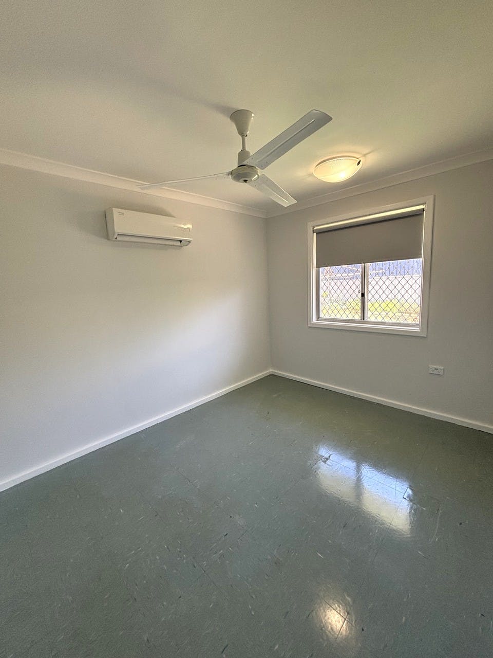 - Open plan loungeroom and dining area with split system air conditioner