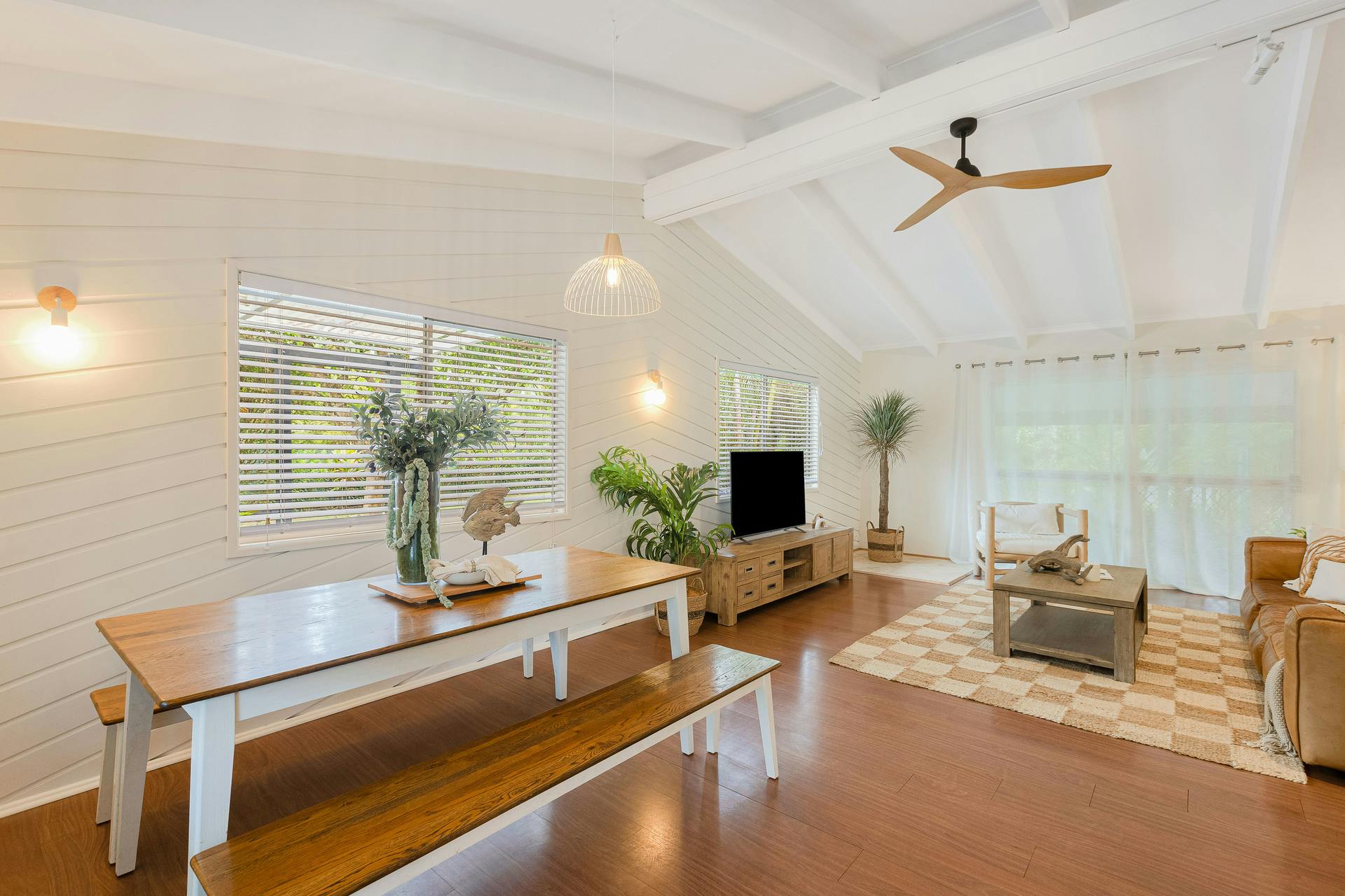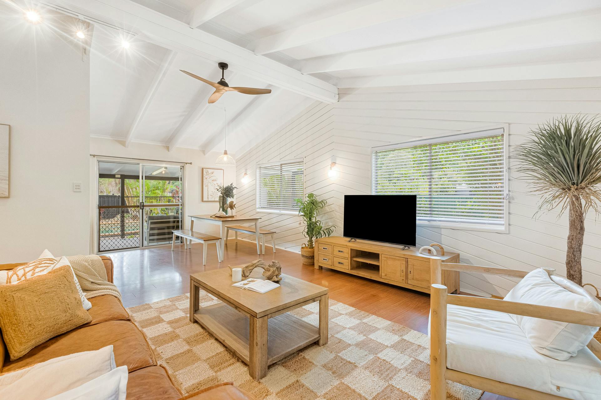 - Light-filled living zones with air conditioning and ceiling fans