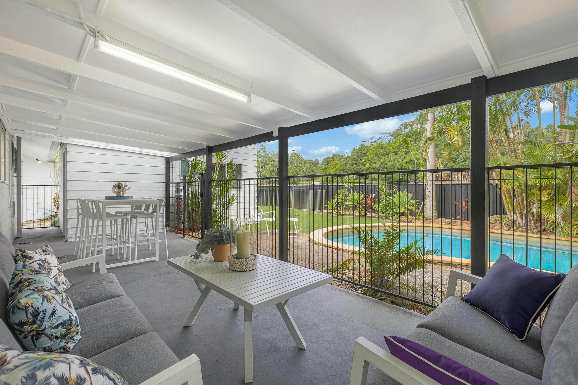 Set on a beautifully landscaped, low-maintenance corner block just moments from the heart of Stokers Siding village, this spacious five-bedroom home delivers the perfect blend of relaxed rural living without the upkeep of large acreage. Surrounded by lush tropical gardens and expansive lawns, the property offers space for the whole family, a sparkling saltwater pool, and an impressive shed/serious workshop. Recently refreshed and move-in ready, this is an outstanding opportunity for growing families seeking room to spread out - or for those downsizing from larger acreage who still want privacy, space and a peaceful country atmosphere without all the hard work.Property Features: