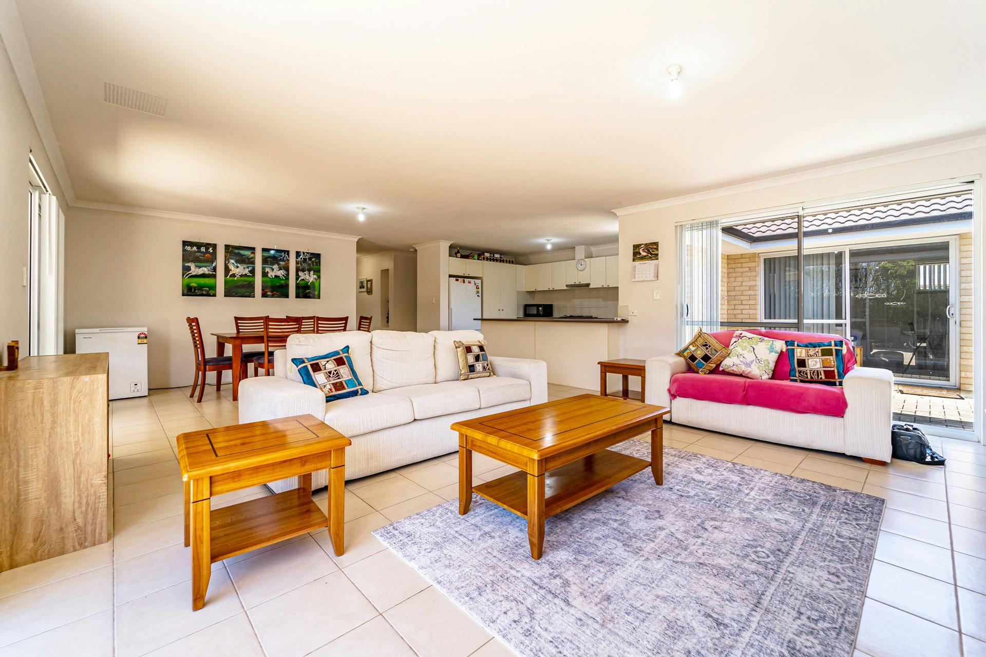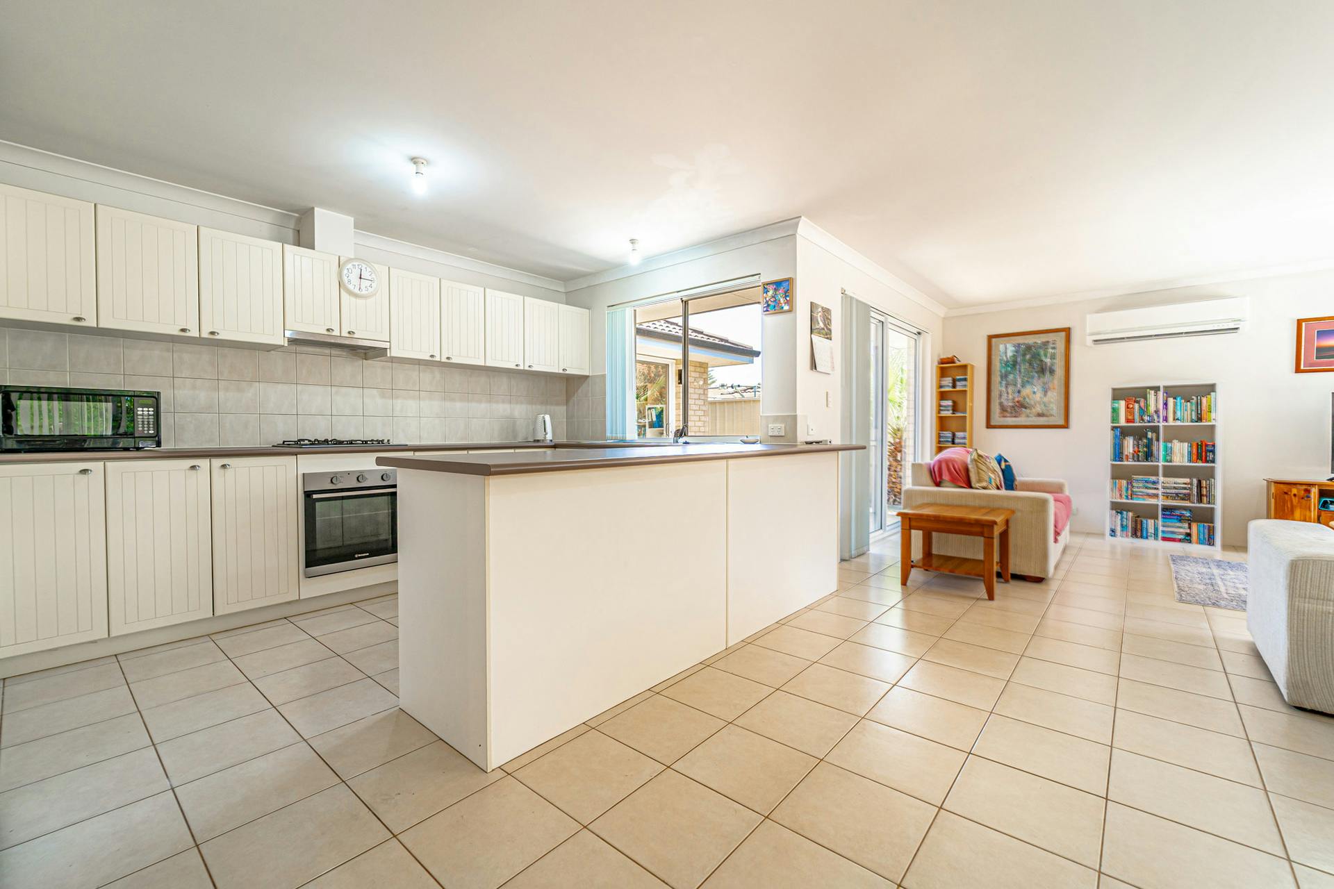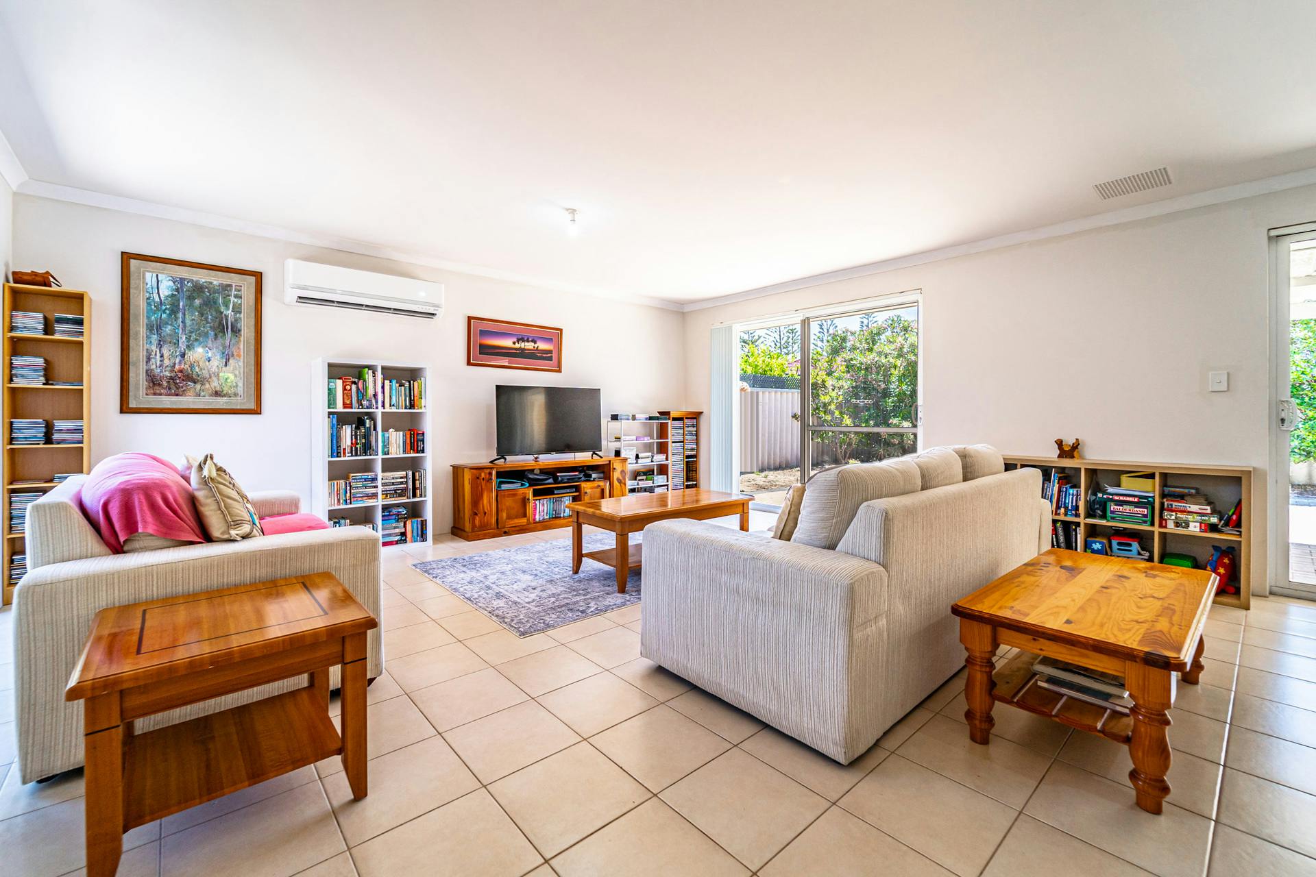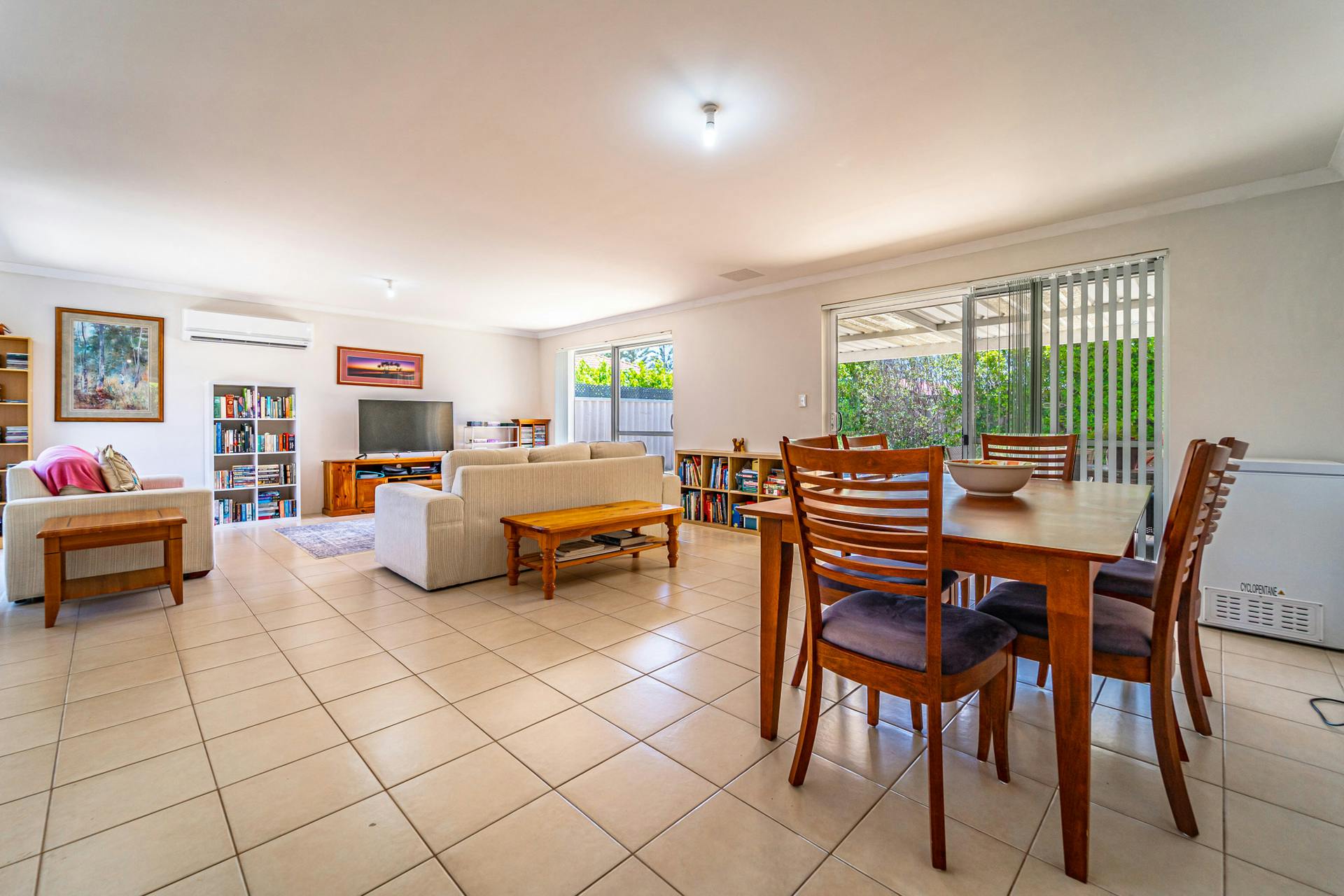 Large open plan living area with split system reverse cycle air-conditioner