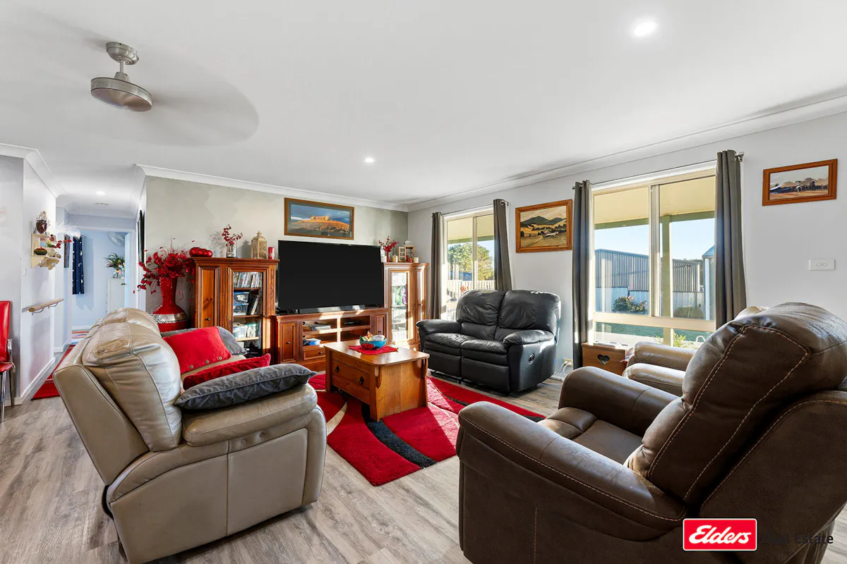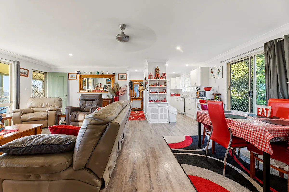 The light-filled open-plan layout seamlessly combines the kitchen, dining, and lounge areas, creating a welcoming central hub for everyday living and entertaining with reverse cycle air conditioning for year-round comfort. The living area flows effortlessly to the outdoor alfresco patio, providing the perfect space to relax or host gatherings while taking in the peaceful surrounds.