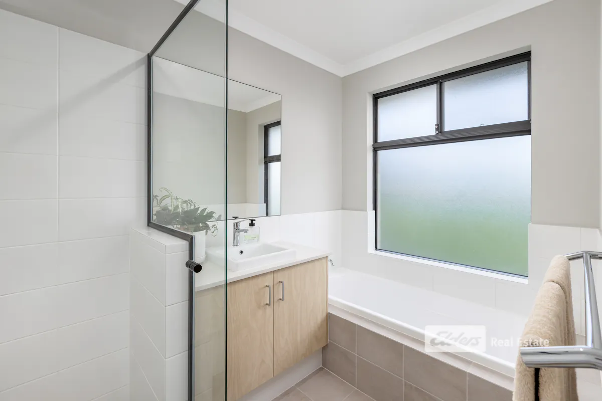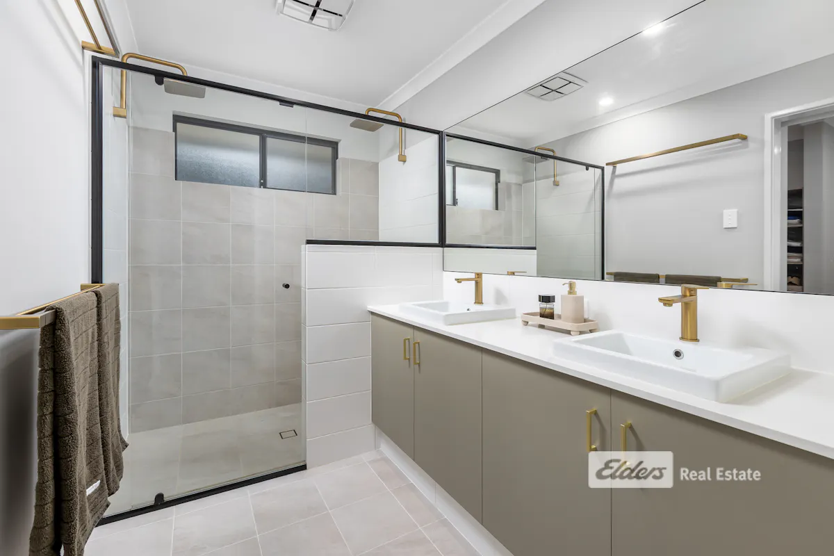 The master suite is well considered, complete with an ensuite featuring dual shower heads and separate taps for added convenience. The main bathroom is equally functional, offering a separate bath and shower. A generous laundry provides excellent storage and direct outdoor access.