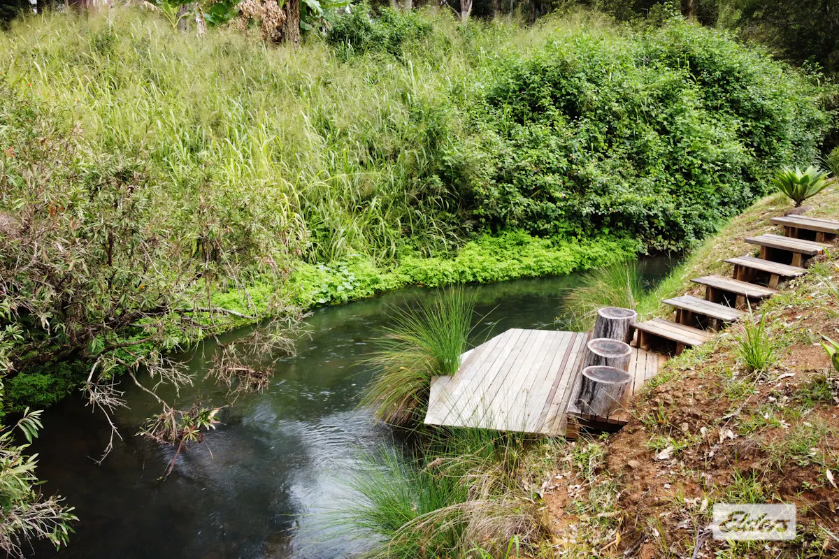 * The established gardens have an abundance of fruit trees & herbs with South Cedar Creek which is a wildlife habitat for numerous birds, butterflies, wallabies, turtles and platypus to name a few. Many viewing and seating areas have been placed to admire the surrounds or take a dip.