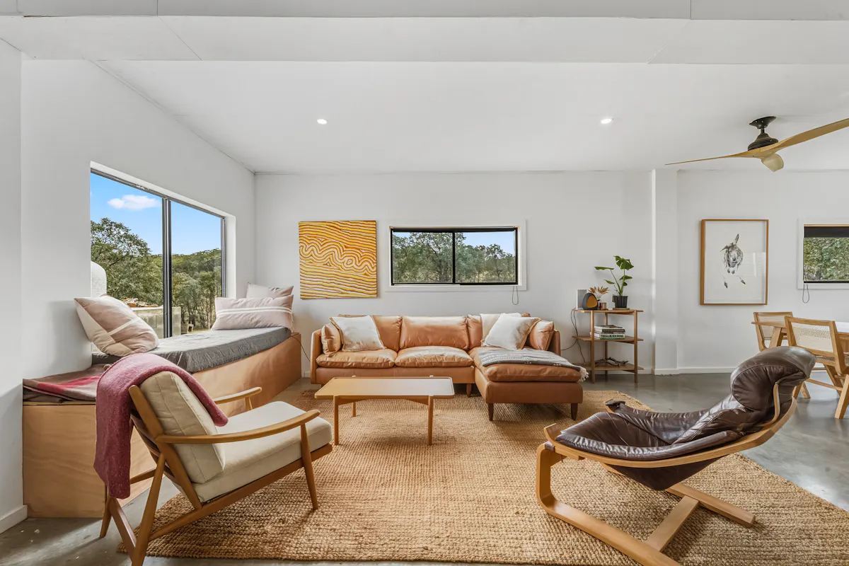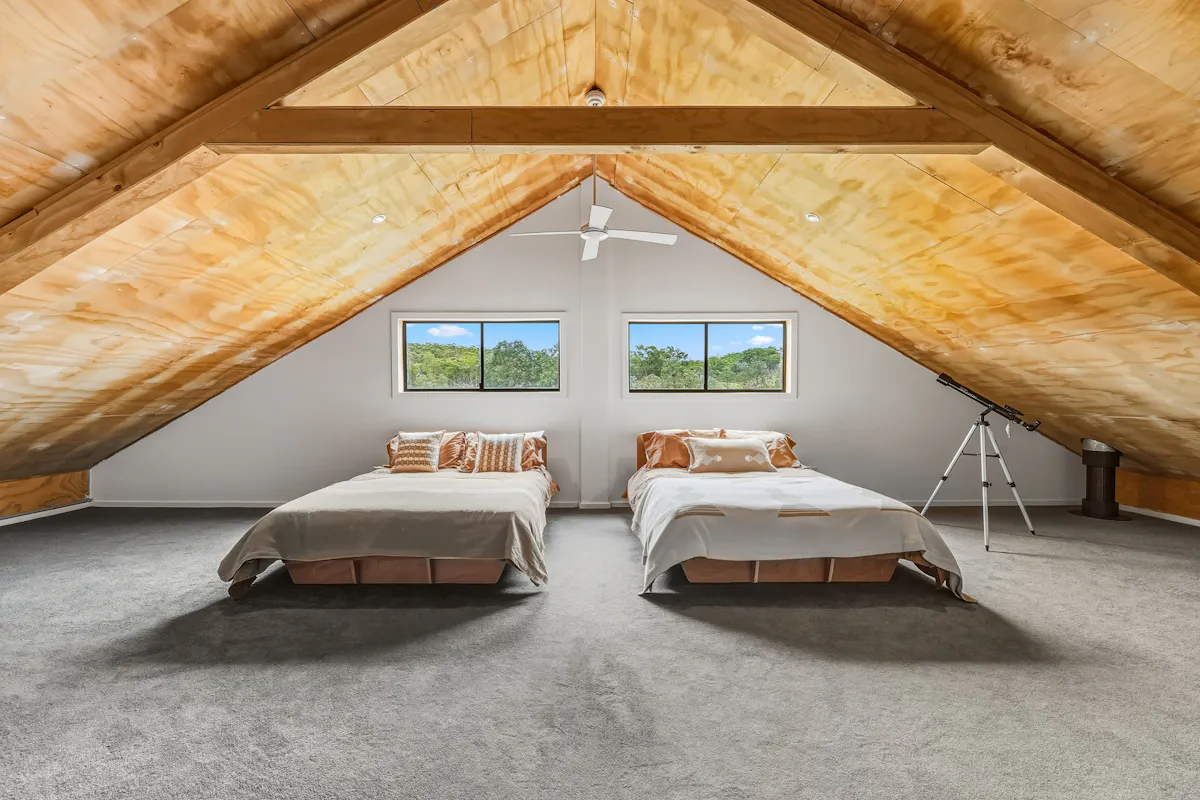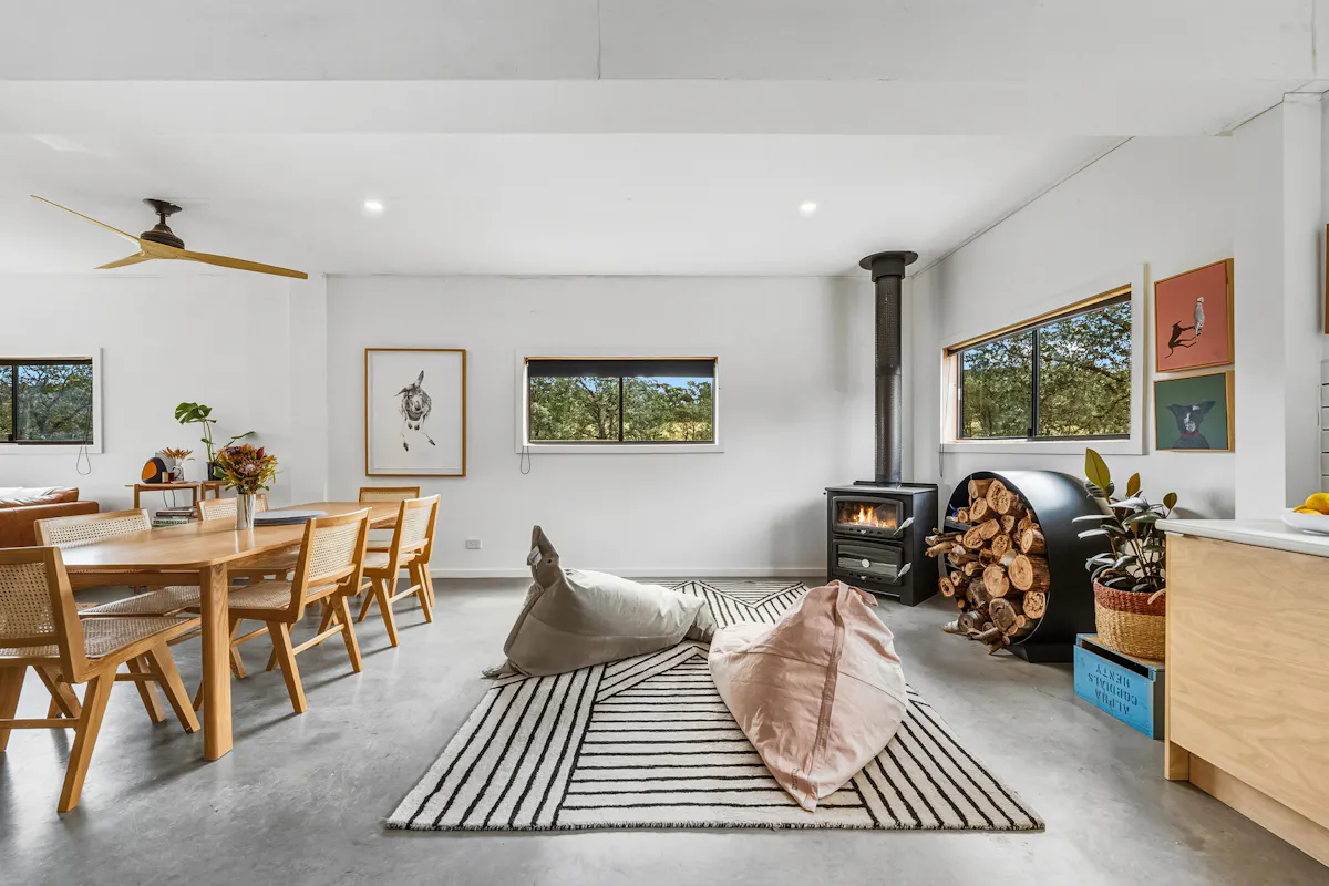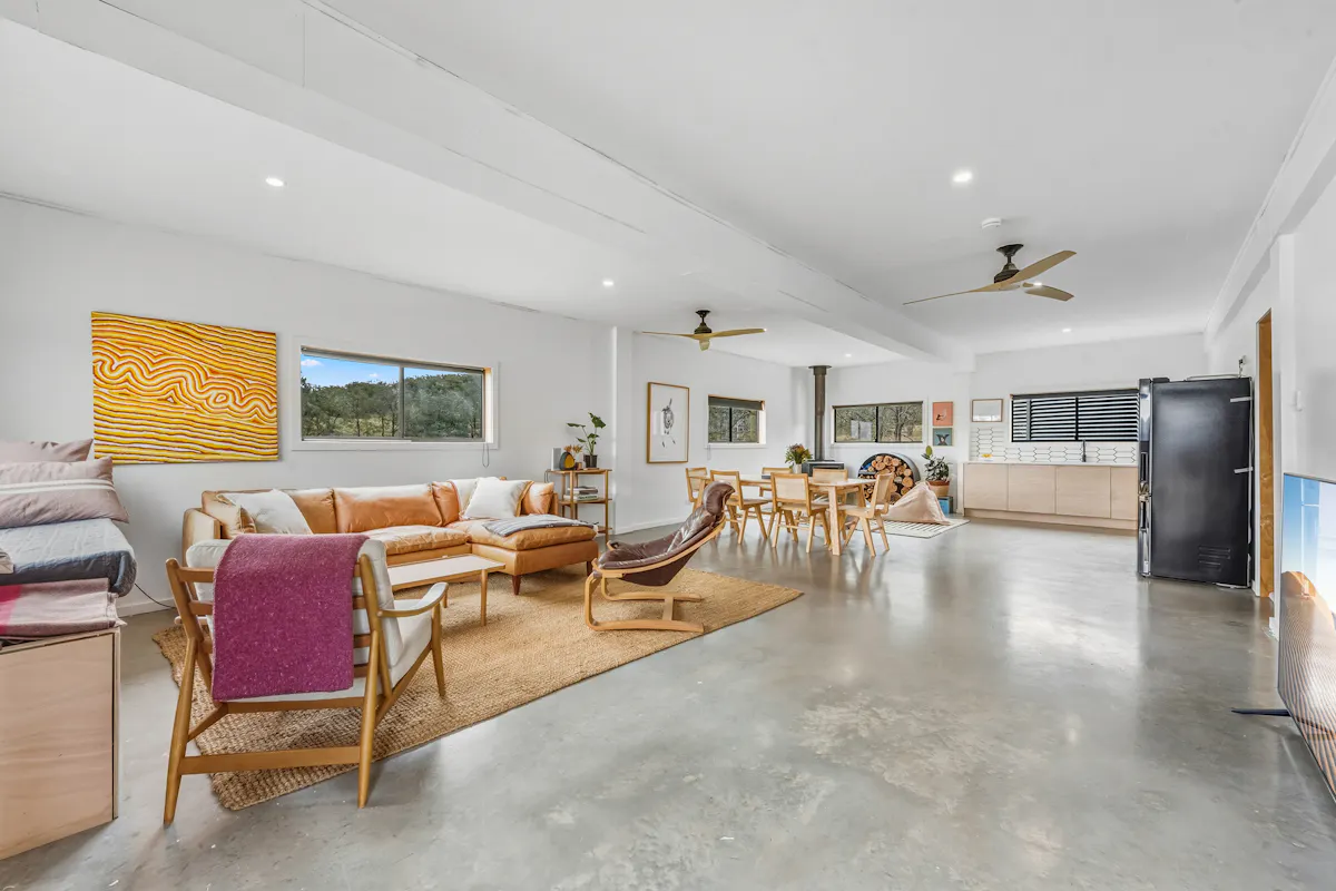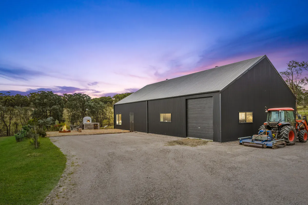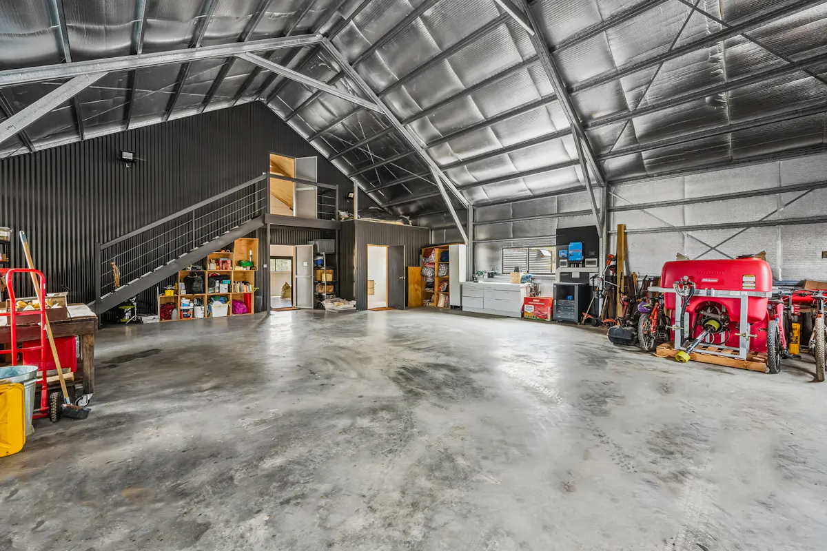 Complementing the future homesite is a beautifully designed Scandi-inspired studio and machinery shed, offering immediate comfort and flexibility. Finished to a high standard, the studio provides generous living spaces for family and guests, featuring a loft-style sleeping arrangement accommodating up to eight adults, a full kitchen, combined bathroom and laundry, fireplace, ceiling fans, and quality insulation throughout. An adjoining three-bay machinery shed ensures practicality without compromising aesthetics.