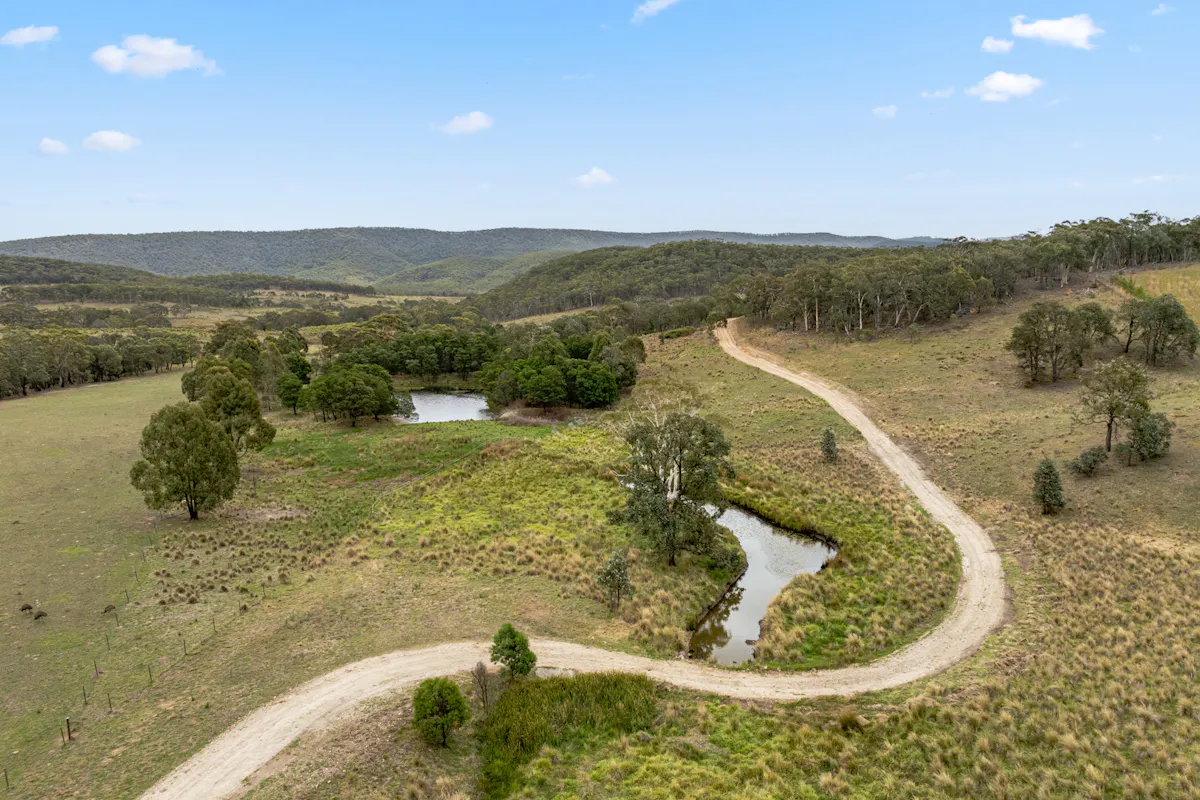 At the heart of the property lies an established olive grove of approximately 800–1,000 mature trees, underpinned by outstanding water security. The holding benefits from a 30–40 ML water licence, two bores, three dams (including two spring-fed), and direct access to a tributary of the Tarlo River-a rare and valuable combination in the region.