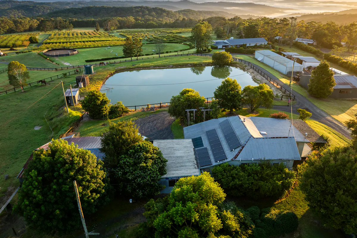 Water security is supported by a complete irrigation system servicing the orchard, while modern energy infrastructure includes a 90kW solar power system with 50kW battery storage, helping reduce operating costs and supporting both residential and commercial use across the property.