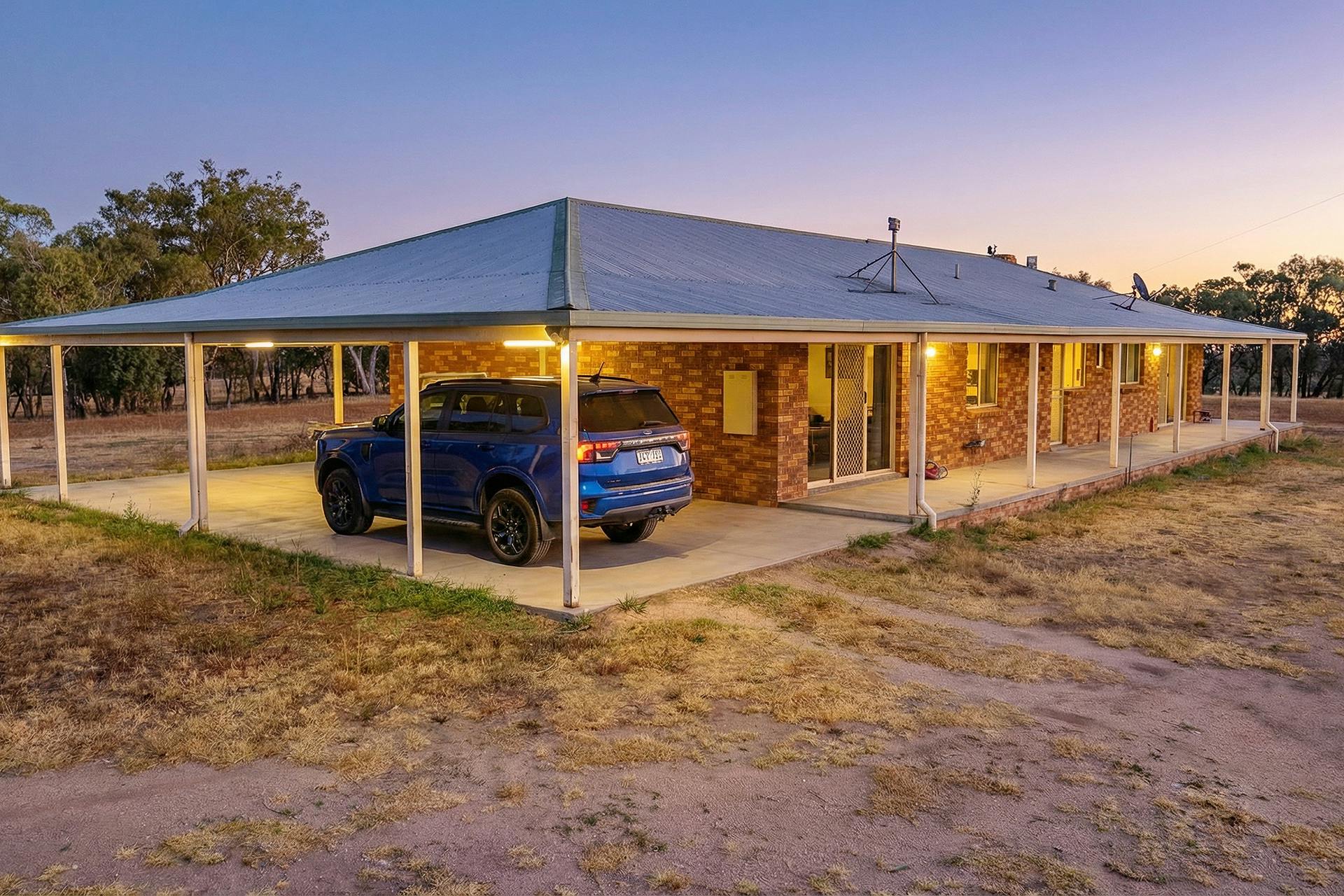 Large brick 3 or 4 bedroom home, lounge, kitchen, all round verandah plus double carport. Steel stock yards with crush, all in excellent condition. 80 x 40 enclosed shed with power, hay shed,. Excellent water, 5 dams, shade trees, 3 paddocks, well fenced.